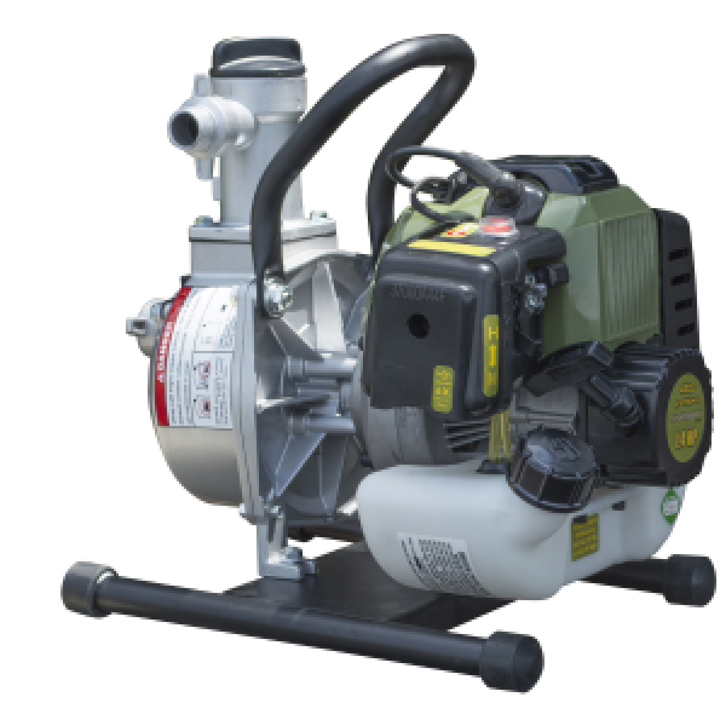 Get the water out quickly and easily with the Sportsman Series 1 Inch 2-Cycle Water Transfer Pump With 3/4 inch Garden Hose Adapter. Use it to pump water to boat docks and duck blinds, home pools and hot tubs, fish ponds and flooded basements. Attach a garden hose, and you have an versatile and easy to use Transfer Pump to have on had on hand for emergencies or jobs around the house and farm. Equipped with a standard 1 inch inlet and 1 inch outlet, the Sportsman Series Transfer Pump is also adaptable to fit a 3/4 inch home garden hose on both the inlet and exit port, making this unit easier to use and more versatile that other models. With a max head of 98 ft, and a suction head of 26 ft. this compact Water Pump has the power to get the job done quickly and efficiently. This small but mighty Transfer Water Pump has a maximum discharge flow of 33 GPM, or 2020 gallons per hour, powered by a 2-cycle 1.4 HP, 43 cc engine, all in an easily portable unit that weighs just 21 lbs. The small size and lightweight frame make it easy to store and transport. EPA and CARB compliant, the Water Pump is equipped with an intake strainer, coupler, two 3/4 inch garden hose adapters, screwdriver, and spark plug removal tool.