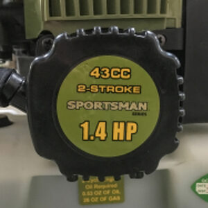 – 1.3 HP, 43cc, 2-stroke, 2-cycle, recoil start, air-cooled OHV engine with TCI ignition, 6,600 RPM