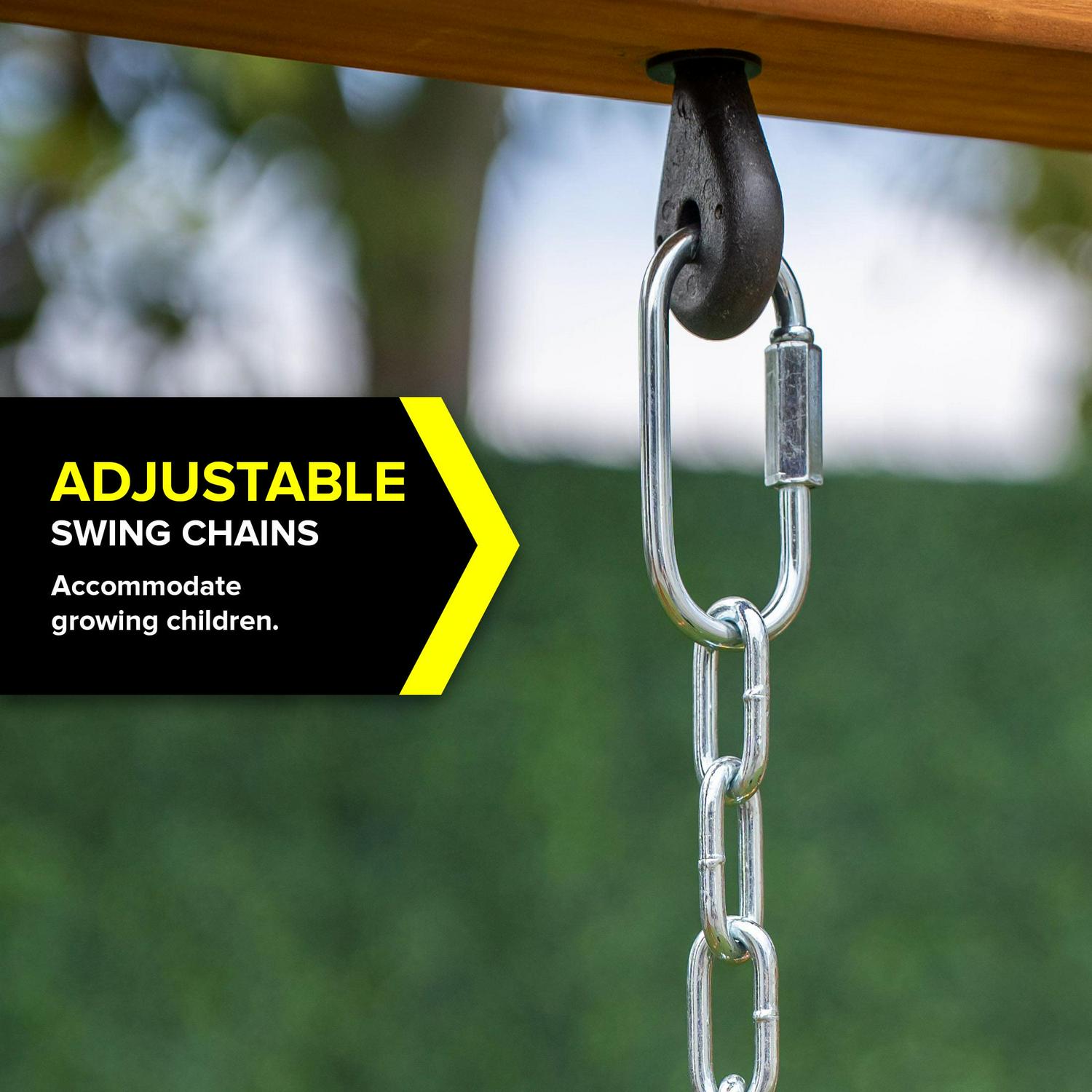 – Swings are adjustable to accommodate growing heights