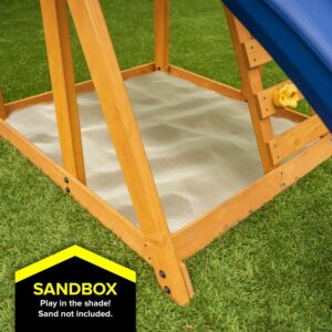 The new Sportspower Addison Wood Swing Set brings all the fun straight to your backyard! The swing set is constructed of sturdy Scandinavian Fir, which is 18% heavier than competitors wood from China. The Addison features extra A frame, that our competition does not, providing extra stability and safety. The set includes 2 sling swings, a rock-climbing wall, a sandbox, a play deck with a canopy roof and a 6ft double walled, blow-molded slide for extra durability (Competition uses single wall slide. Also, our slide comes with a lifetime warranty.). With the variety of playing elements, your kids will exercise and work on their motor skills, all while having fun. All Sportspower products meet or exceed all ASTM safety standards, so kids and parents can both enjoy the Addison Wood Swing Set with a peace of mind.