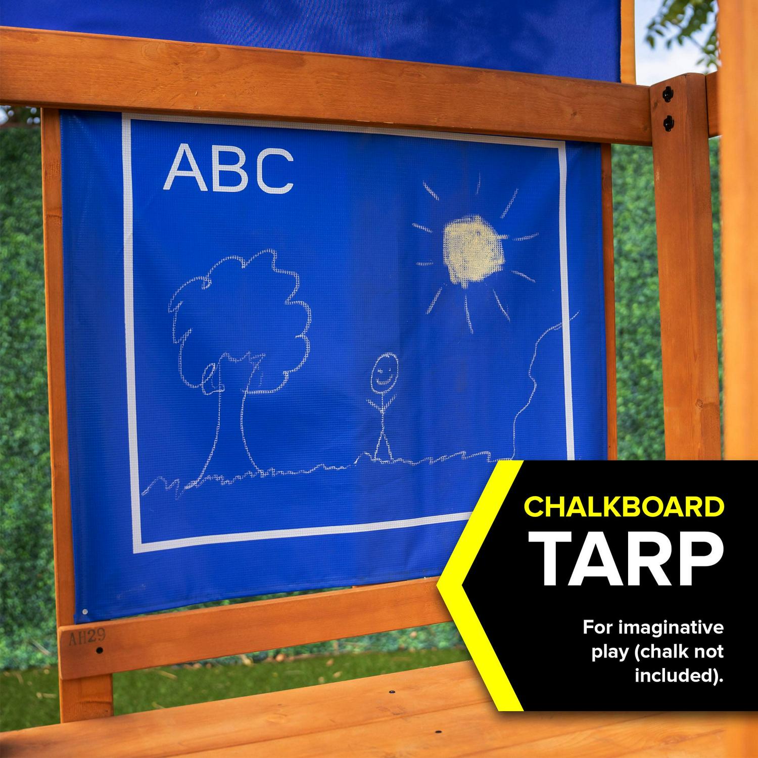– Chalk wall for imaginative play (chalk not included)
