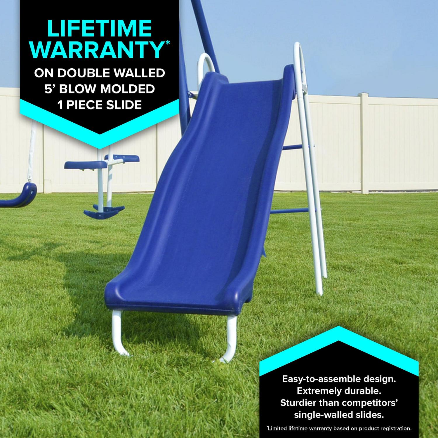 - Durable 5-foot blow-molded slide