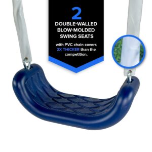 - Two blow-molded swings with safe vinyl chain covers to protect hands