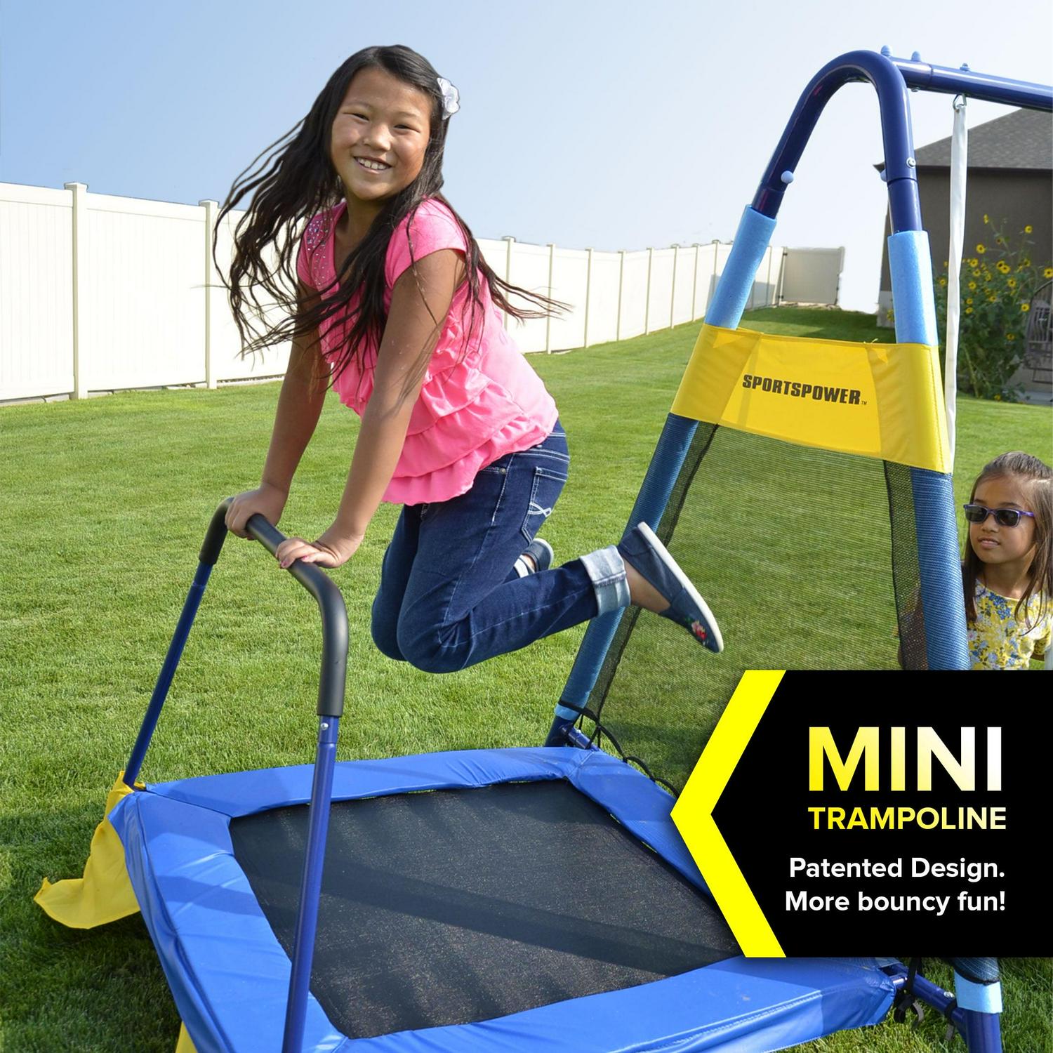 - Features: Trampoline