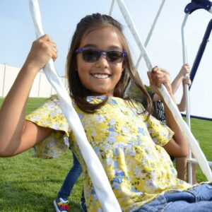 – Two blow-molded swings with safe vinyl chain covers to protect hands