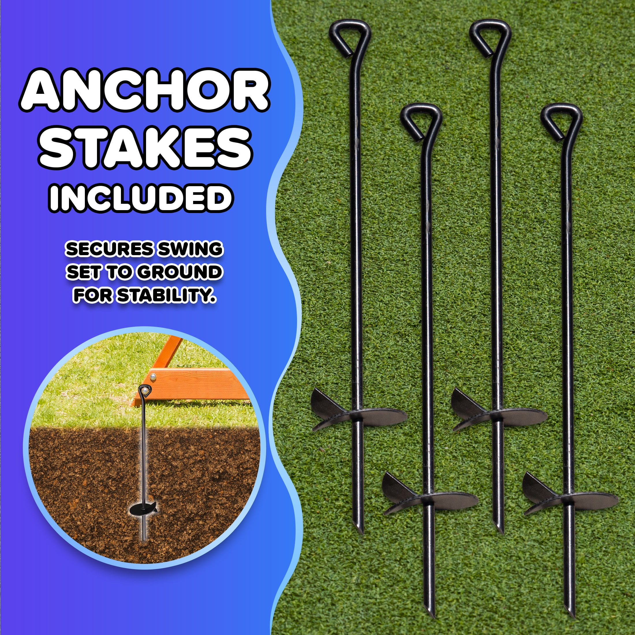 Constructed of heavy duty wood 1 padded saucer swing for up to 2 children 1 height-adjustable sling swing for growing kids 6′ double walled blow-molded slide comes with a lifetime warranty Sandbox (sand not included) Rock-climbing wall Chalk tarp for imaginative play (chalk not included) Dual A-frame support beam adds stability & security the competition does not have Play deck with UV-resistant canopy roof Includes anchor kit to help safely secure the swing set into the ground