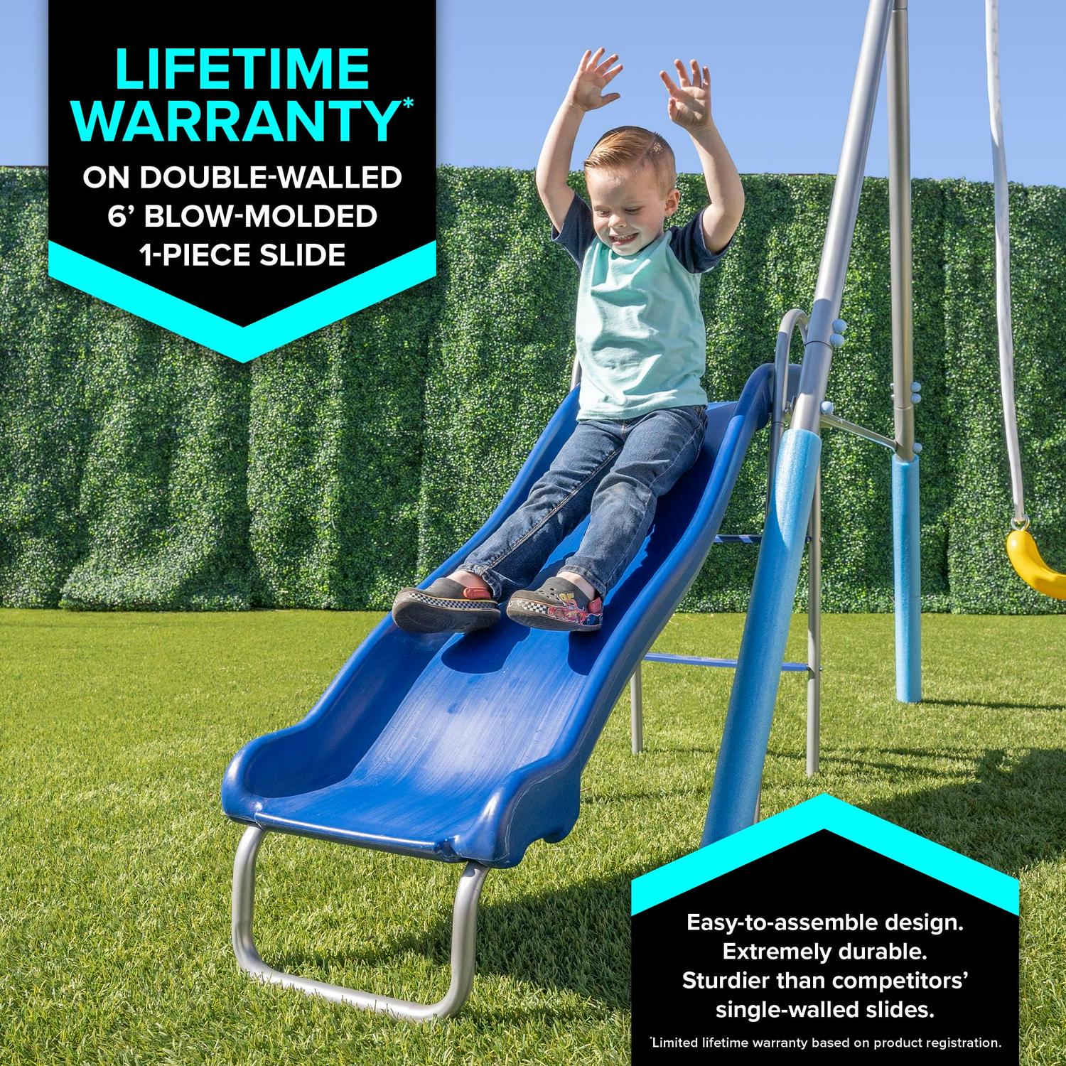 – 1-piece, 5-ft wavy double walled blow-molded slide (competitors use single wall slide), comes with lifetime warranty