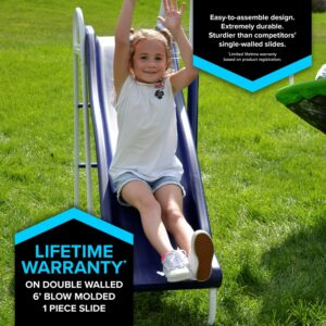 - Large and durable 6-foot 6-inches (78 inches) one-piece blow-molded slide for easy assembly