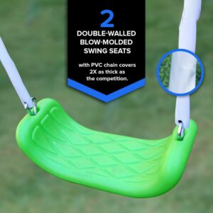 - Two blow-molded swings with safe vinyl chain covers to protect hands