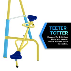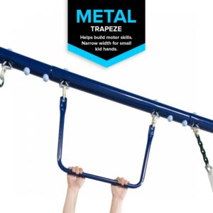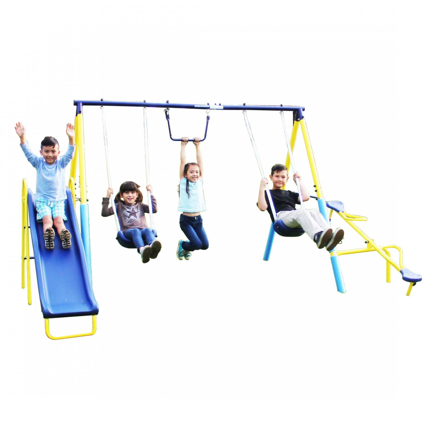 Sportspower Outdoor Super First Metal Swing Set with Trapeze, Teeter-Totter, and 6′ Double Wall Slide with Lifetime Warranty