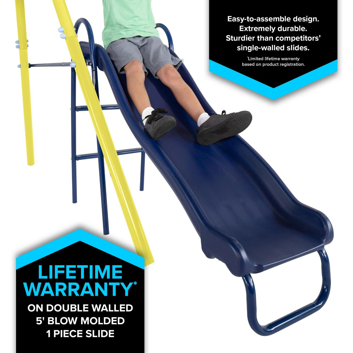 – 5′ durable blow-molded slide wtih lifetime warranty.
