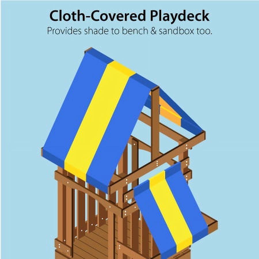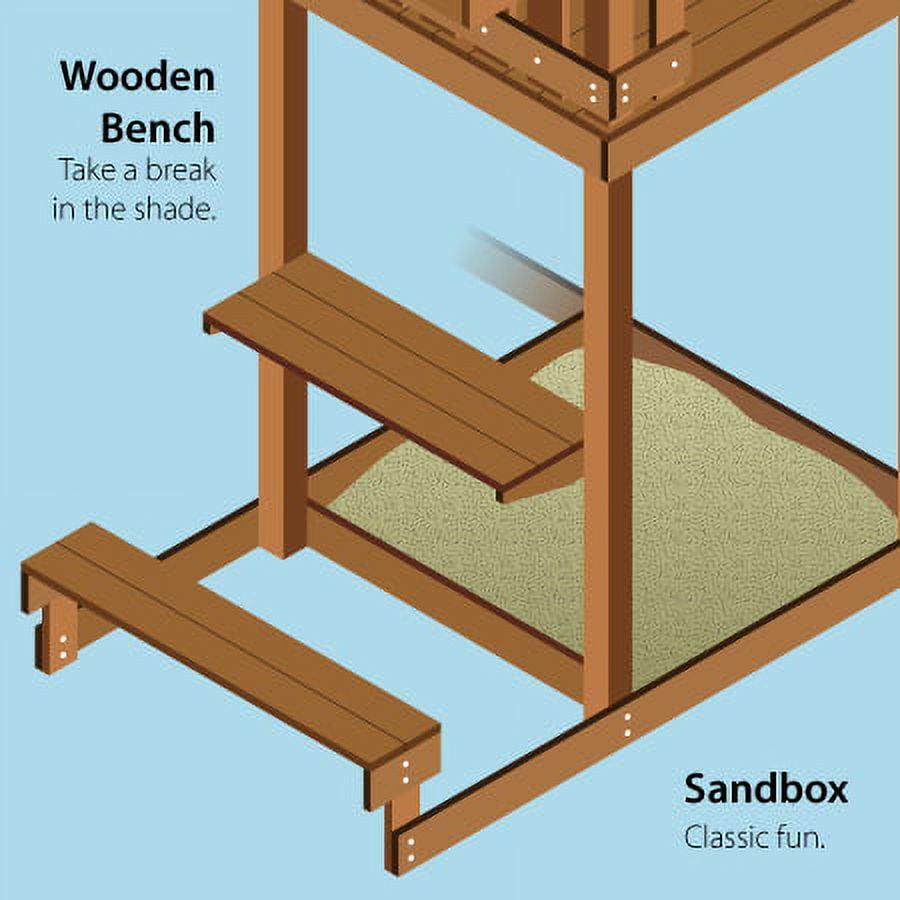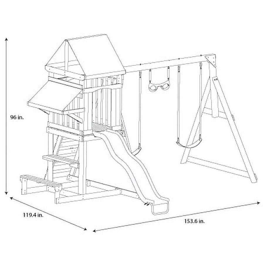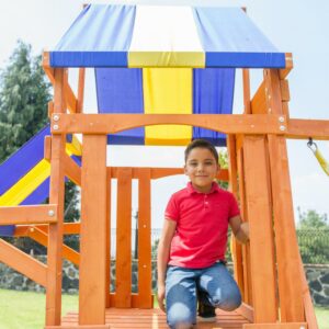 Sportspower Sunnyslope Wooden Swing Set with Play Fort, Trapeze, and 6′ Double Wall Slide with Lifetime Warranty