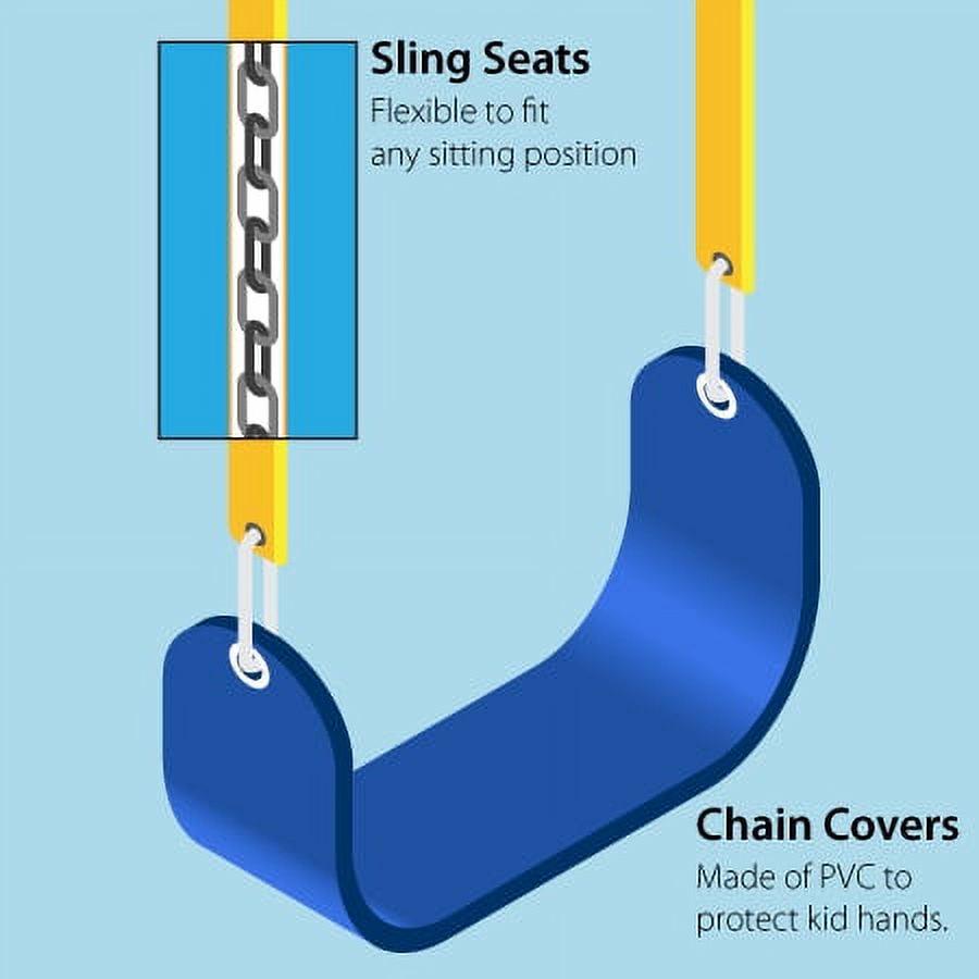 - 2 sling swings with safe vinyl chain covers to protect hands