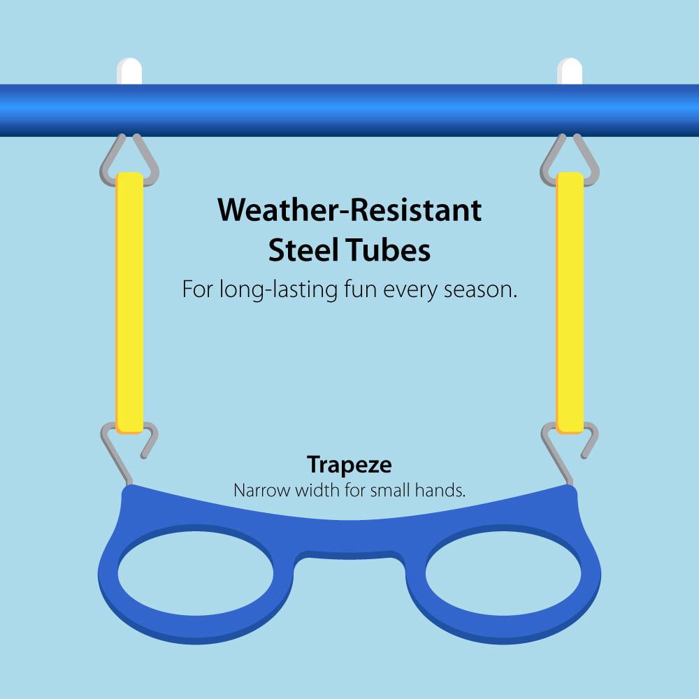 – 2 sling swings with safe vinyl chain covers to protect hands