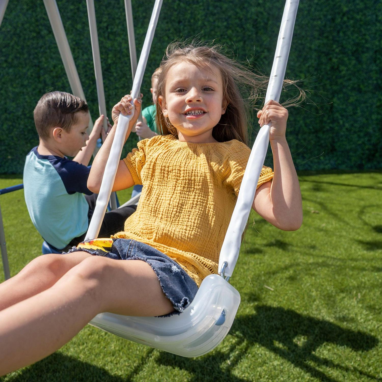 - Adjustable swings chains to accommodate growing heights