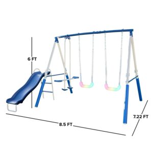 Sportspower Super Lights Metal Swing Set with LED Swing Seats, 2 Person Glider and 5′ Double Wall Slide with Lifetime Warranty