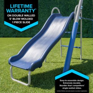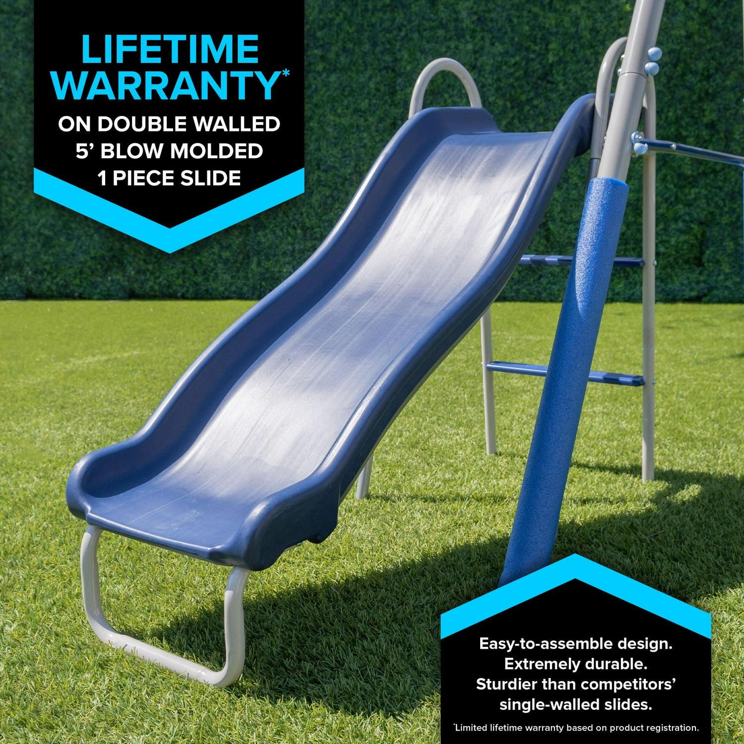 - 5ft. large and durable one-piece blow-molded wavy slide for easy assembly