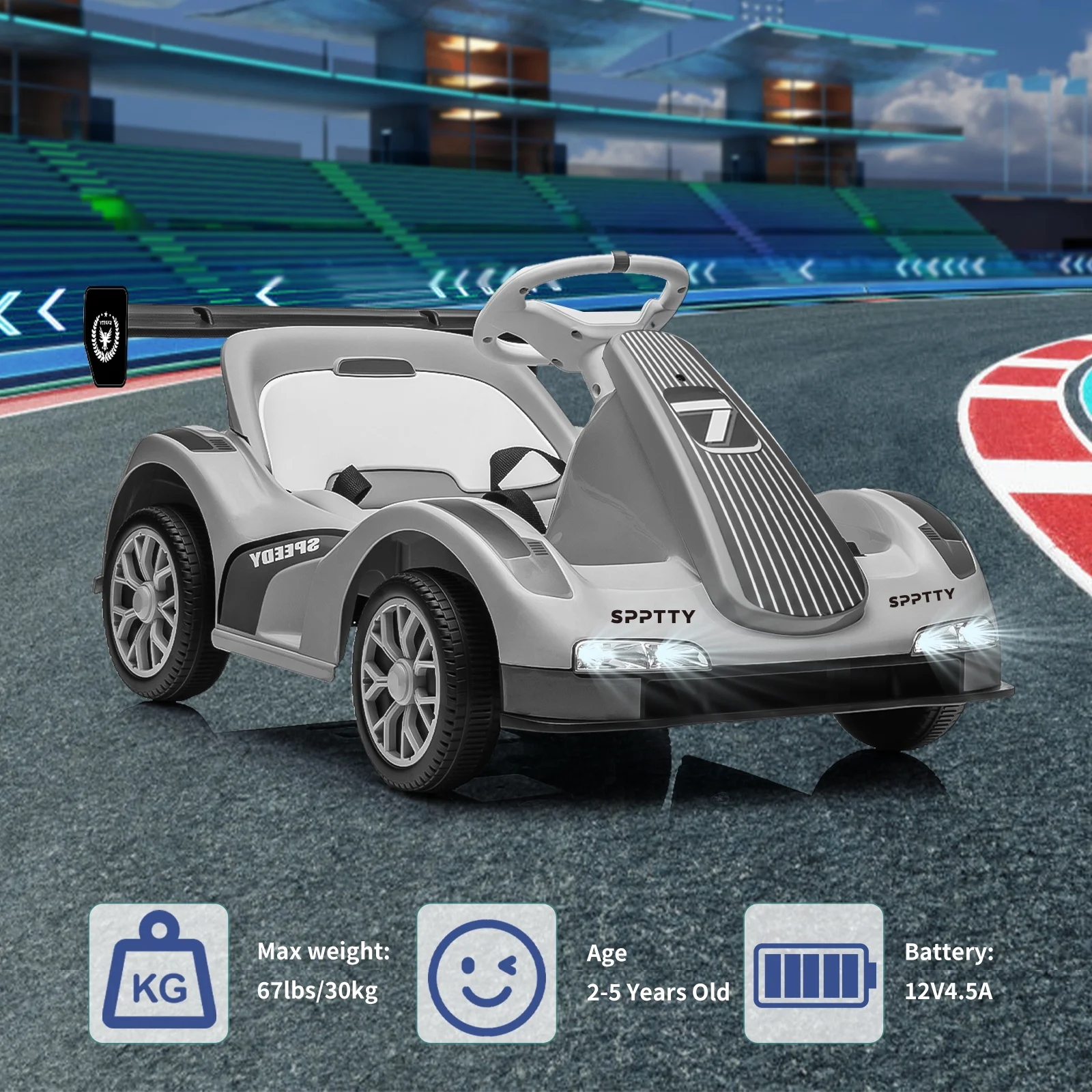 NEW RELEASE 12V Ride On Toys Car NEW RELEASE 12V Motorcycle for Kids Electric Go Kart Installation Video SPPTTY Electric go kart not only the children’s first ride on cars, but also their first time machine, allowing them to leave footprints in every corner of their childhood.This 12V go kart provides driving fun, also combines educational elements with music and storytelling.This electric cars can be easily assembled in three steps.The eye-catching headlights and automatically flashing rear lights are like a moving and gorgeous stage. So, if you are looking for a gift that will sparkle and excite your children, then get them one of these go-karts! SPPTTY Ride on toys is made of high-grade PP and steel to support long-term use.4 wear – resistant sturdy wheels for smooth and safe driving on all kinds of roads.Slow start function to prevent children from being frightened by sudden acceleration. The child can also control the kart independently with the easy-to-grip steering wheel, pedals and go/stop/reverse switches. Specification: Color: Red/Pink/Grey/Green Material: Steel, PP, PVC Overall Size: 31.91″ x 20″ x 17.73″ (L x W x H) Suitable Age: 37-96 Months Old Speed: 2 mph Load Capacity: 66 lbs Charging Time: 8-12 Hours Battery: 12V 4.5AH*1 Charger: 12V 1000mA Drive Motor: 380*2 (18000RPM) Gross Weight: 21.56 lbs Package Includes: 1 x Kids Ride On Go Kart 1 x Remote Control 1 x Charger 1 x Instruction