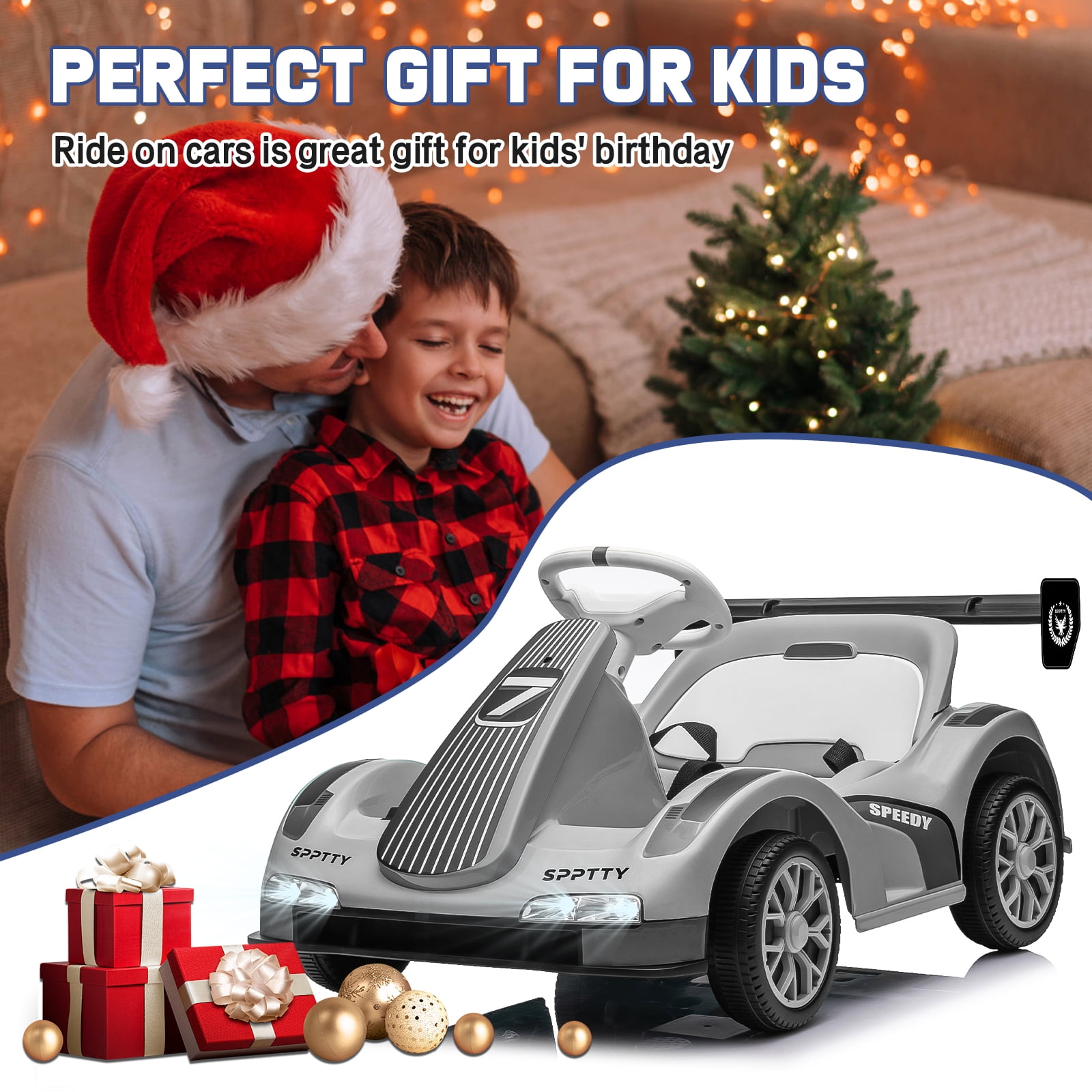 【Reliable Electric Go Kart】 Our ride on cars meets the highest safety standards.The remote control is designed with slow start function to better ensure kids’ driving safety. The seat with raised edges and safety belt prevent children from accidentally falling out.Beyond this, spacious seat and safe backrest prevent kids from leaning back. 【Rechargable Battery】Our ride on toys for toddlers 1-3 comes with a 12V 4.5AH rechargeable battery and 2 380W motors. It comes with a rechargeable battery and charger adapter, fully charged within 8-12 hours.It is applicable to various roads, including asphalt road, brick road and cement road. Max weight capacity of 66Lbs. 【2 driving modes】The included 2.4GHz remote control provides three speed adjustments, allowing parents to control the electric car with the remote control. which improves safety while increasing parent-child interaction and communication. In addition, children can also control the baby car via the foot pedals and steering wheel. Our kids ride on toys are equipped with upgraded 3-point safety belt. 【Multiple Functions for Fun】 Our toddler car based on a real go kart model. Looks like the real model elegant design details with manipulation platform, USB, MP3 player, bright LED lights and built-in music.It will give your child more realistic experience. Experience ultimate entertainment with the interactive dashboard 【Ideal Gift for Your Kids】Kids toys car not only can you exercise your child’s physical coordination, but also be a prefect gift for Birthday, Party, Christmas, Thanksgiving Day, New Year, etc. Suitable for children from 3+ year old boys and girls. If you have any questions, please feel free to contact us, we will provide you with satisfactory solutions in time!