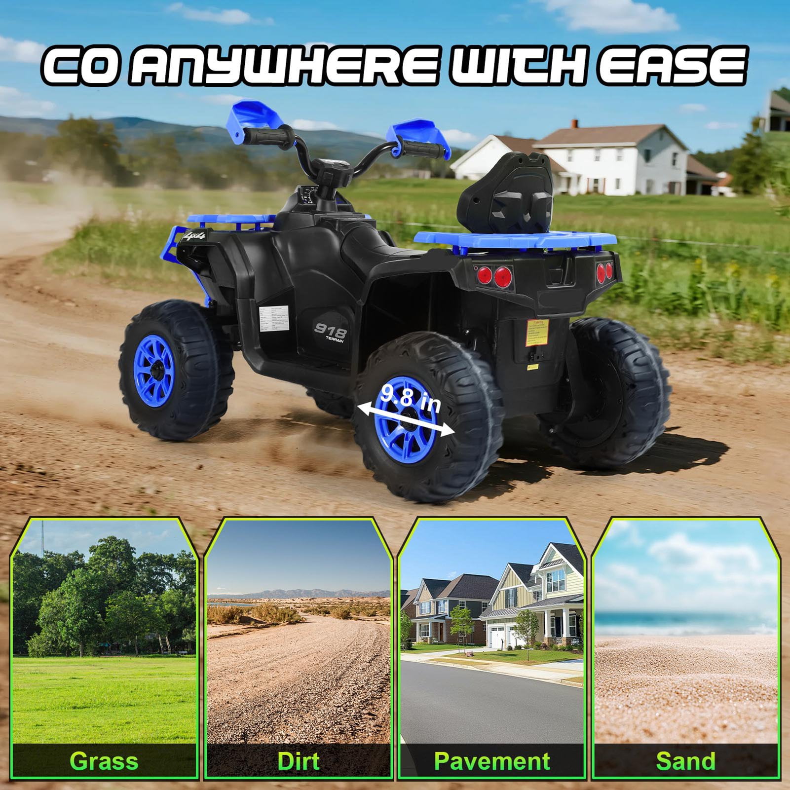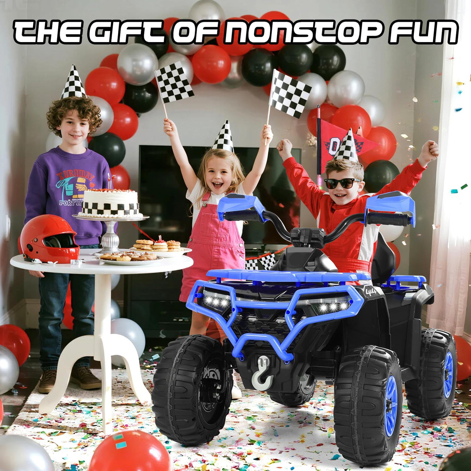 Kids ATV 4 Wheeler, 24V Ride on Toys with 2 Seater, Electric Car w/ Bluetooth/MP3 ,and Flag,Blue