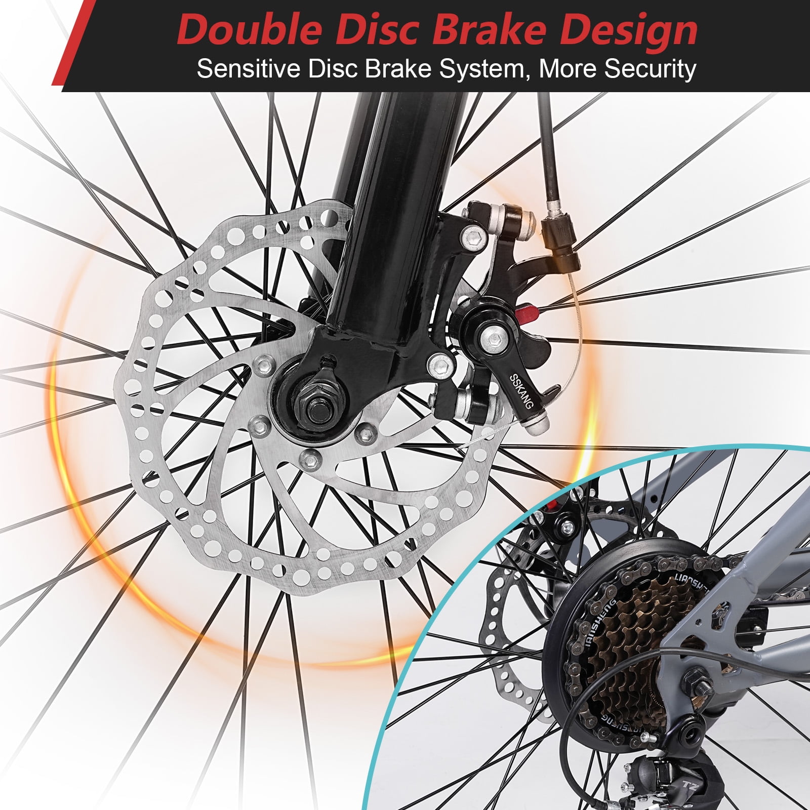 Mountain bike is equipped with a classic 21-speed shift. The 24″ bicycle arrives 85% assembled and includes all parts with tools, so you will easily fully assemble it. Ergonomic design and complete 21-speed bike for boys girls configuration help your child conquer the outdoors. Become the best partner for exploration. Bike is specially designed for teens, the 24-inch wheels are lighter for better handling and are wrapped with 2.1-inch wide offroad MTB tires for more traction and better grip, allowing sure-footed and stable riding. The mountain bike with disc brakes will be safe deceleration and emergency stop, the front suspension fork absorbs bumps when passing rough roads. Technical Shimano 21-speed drivetrain, smooth gear changing, long service life Equipped with anti-slip and anti-stab MTB tires for all-terrain exploring Dual disc brakes and front suspension for better control High carbon-steel frame and AV aluminum rims, strong and lightweight Morden appearance design, available in 3 colors for boys girls Multiple bicycle reflectors for night riding