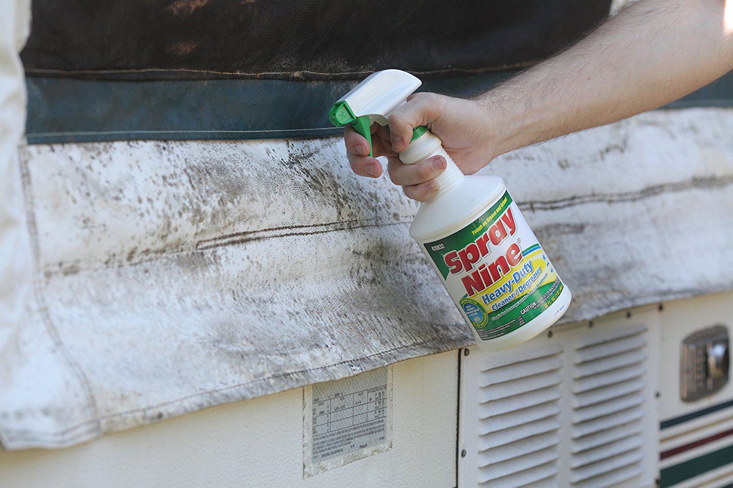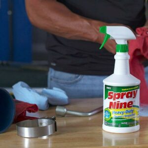 Professional-strength cleaner/disinfectant powers off tough soils fast. Spray Nine Multipurpose Cleaner tackles the toughest tasks head-on with less scrubbing. You can use this cleaner to effectively clean, degrease, disinfect, remove stains, control mold and mildew and deodorize. Cleaner disinfects against viruses in 30 seconds, bacteria in 45 seconds and sanitizes in only 10 Seconds. Suggested applications include equipment, tools, tires, vinyl and concrete floors, vinyl, stainless steel, painted metal, fiberglass, chrome, engines, plastic, enamel, rubber, walls, ceilings, concrete, sinks, toilet exteriors, showers/bathtubs and much more.