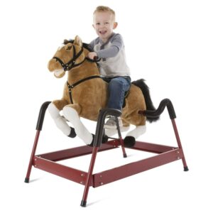 – STURDY AND SAFE – The spring Rocking Horse is constructed with quality metal and strong springs, which are covered with plastic tubing for safety, all to make this a sturdy and safe riding toy. With metal foot stirrups with multiple levels for foot placement, your child can easily and safely gallop with their new friend.