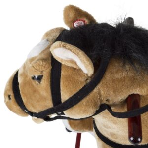 – SPECIAL FEATURES – The Happy Trails spring rocking horse, soft and plush to touch, is hand-crafted and has wooden handles for balance. It features a saddle and reins, so your little equestrian can guide their new friend. Install 2 AA batteries (not included) underneath the horse, hit the Press Here button on the ear, and the horse makes galloping and neigh sounds, just alike a real horse.