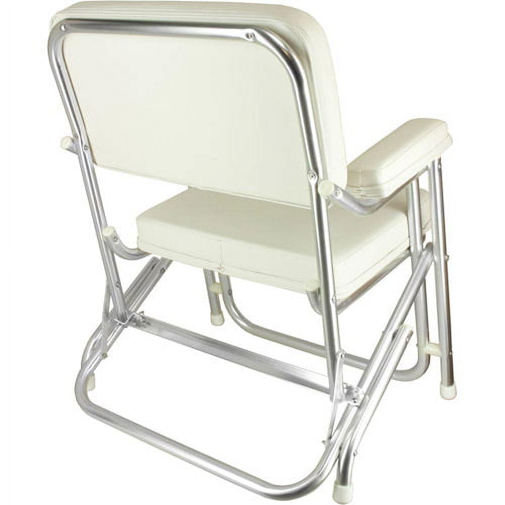 Give your outdoor living spaces some additional seating with the Springfield Classic Folding Deck Chair. The folding outdoor chair is durable and constructed to be sturdy. Each cushion is stuffed with a high-density foam material and covered in tough marine-grade vinyl. The chair is made with double tubes for additional support and are bright dipped anodized to make them corrosion resistant. These portable deck chair folds up compactly for simple storage when it is not being used.