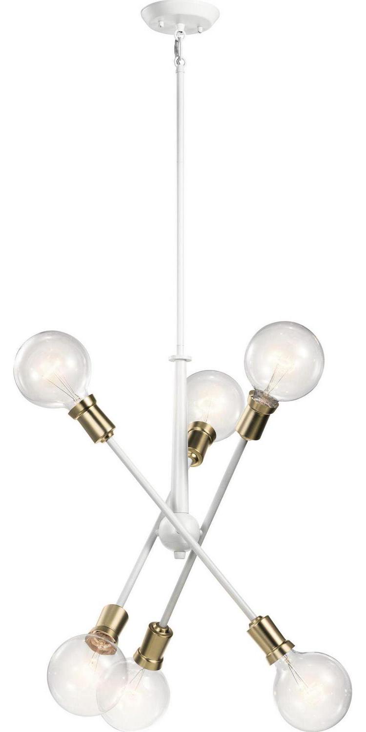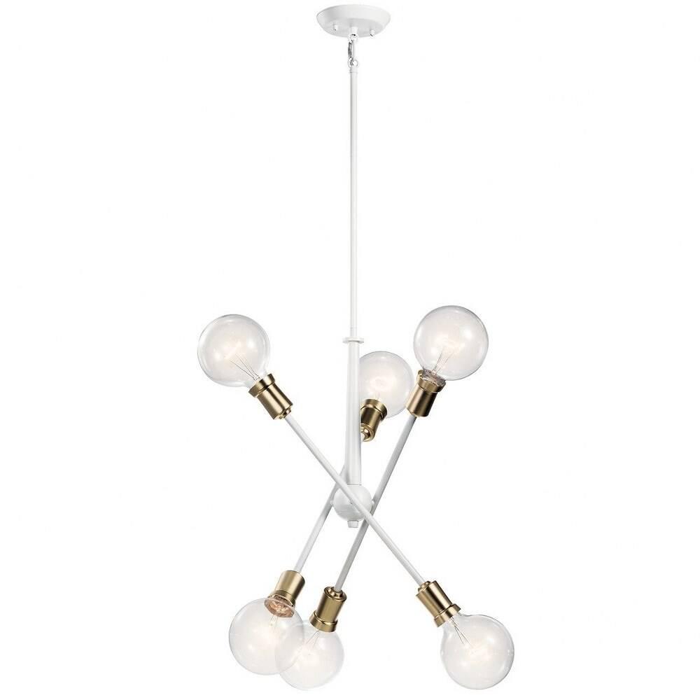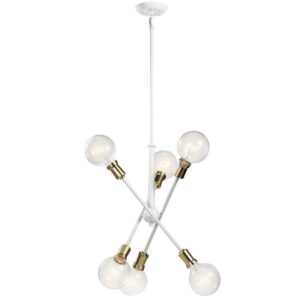 Kichler Lighting-43095WH-Collection: Armstrong, Material: Steel, Finish Color: White, Width: 20″, Height: 27.75″, Chain Length: 36″, Lamping Type: Incandescent, Number Of Bulbs: 6, Wattage: 100 Watts, Dimmable: No, Moisture Rating: Dry Rated, Desc: This Mid-Century 6-light chandelier in Black from the Armstrong collection features a in.sputnikin. design with adjustable arms allowing you to customize the light for just the right look. Sloped Ceiling Adaptable: Yes / Chain Length: 36.00. ,-Armstrong – 6 Light Small Chandelier – with Contemporary inspirations – 27.75 inches tall by 20 inches wide-White Finish -Traditional Installation