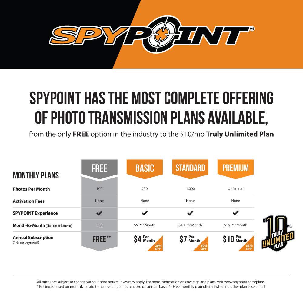 The pairs the most popular cellular trail camera in years with the ultra-reliable LTE cellular network. The SPYPOINT continues to challenge traditional expectations of performance and value the hunter can expect from a camera. Get twice the mobile scouting intelligence and twice the picture-taking power, but without paying twice the price. The performance and affordability has made it the most popular cellular camera of all time, and the value just got better.