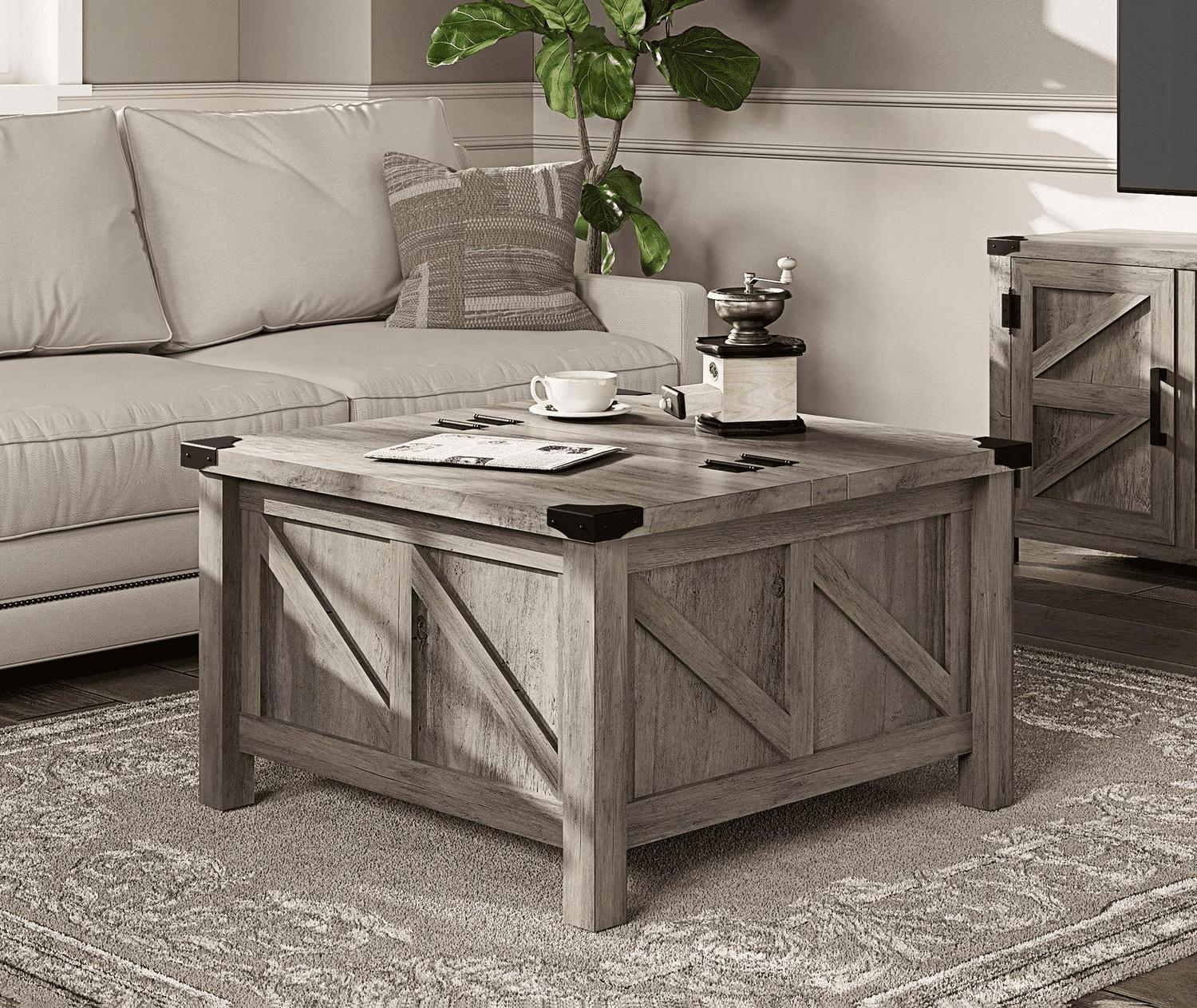 Square Coffee Table with Lift Top and Storage for Living Room, 30 x 30 , Wash Grey