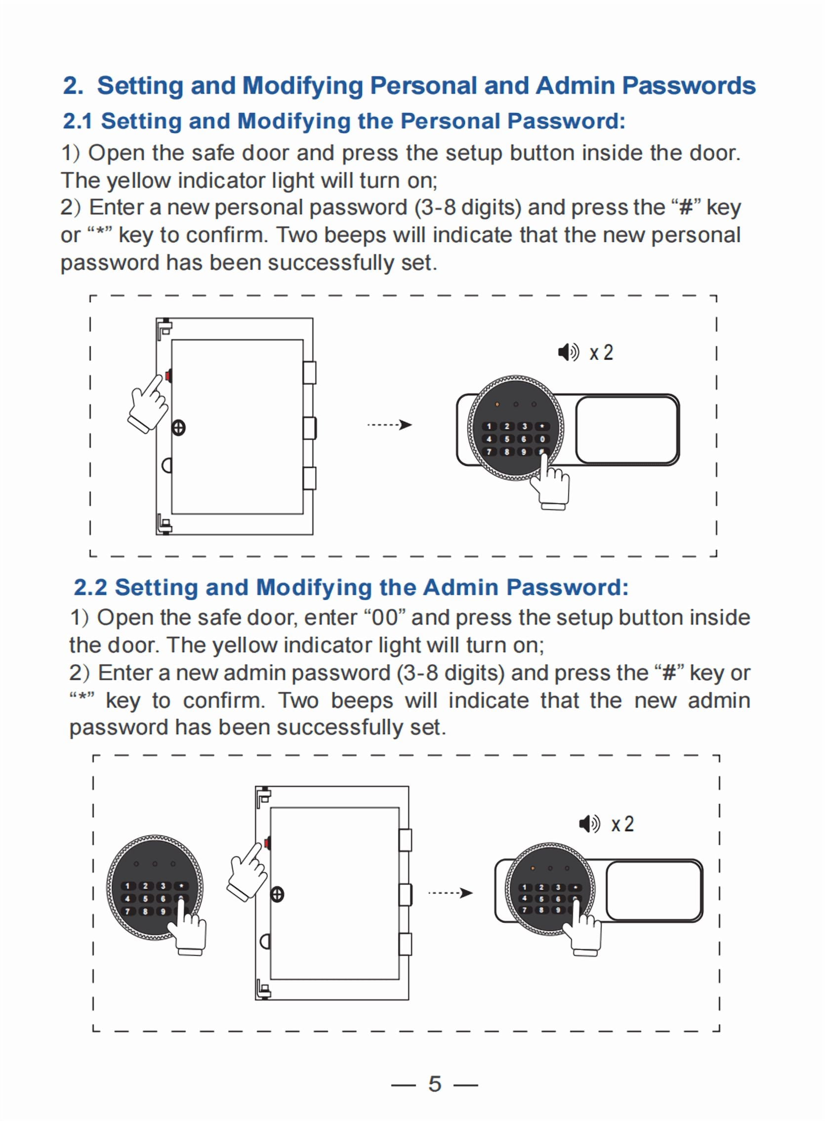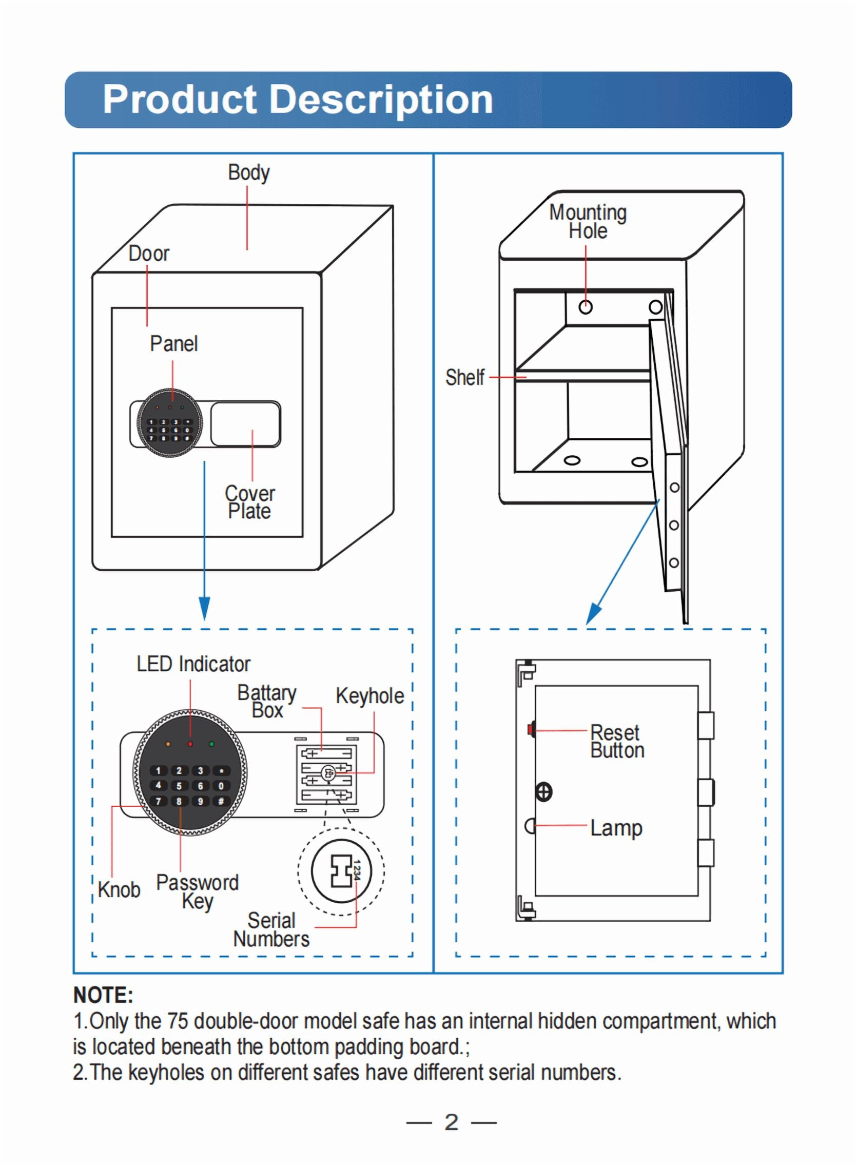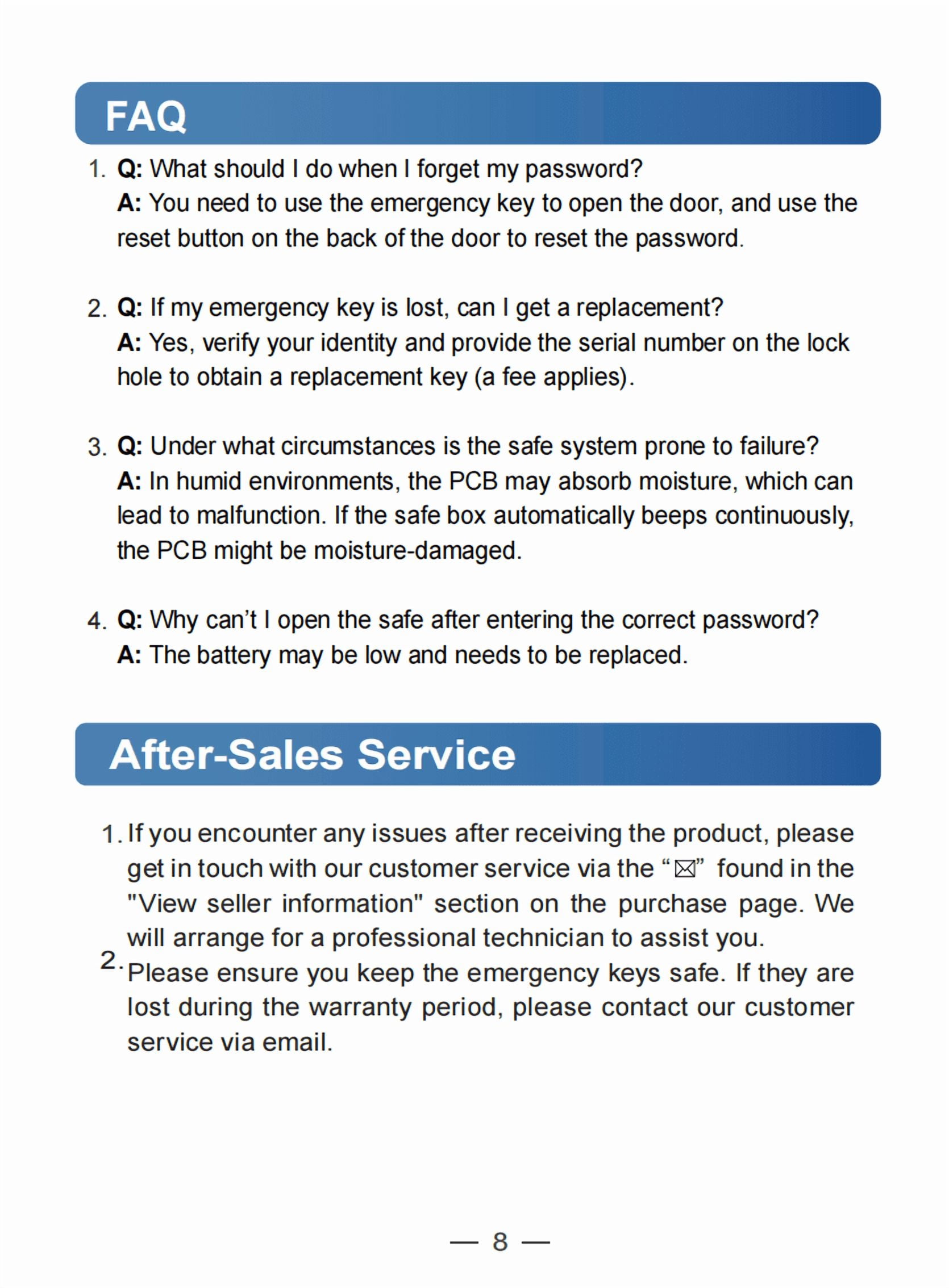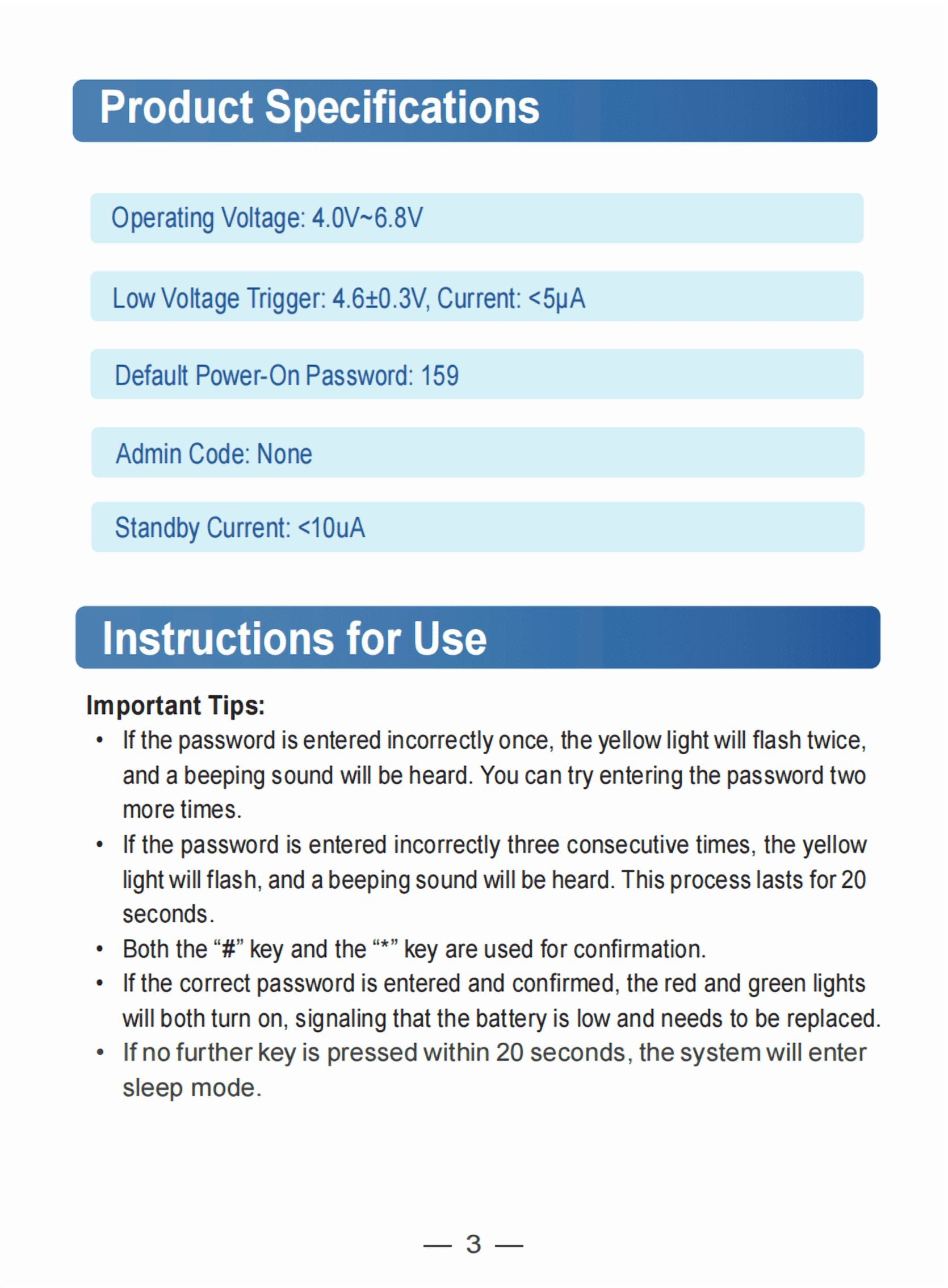 Three times to enter the wrong password safe fire waterproof will sound a warning beep lasting 60 seconds, enter the correct password to stop the alarm. Violent knocking will also trigger the alarm system.