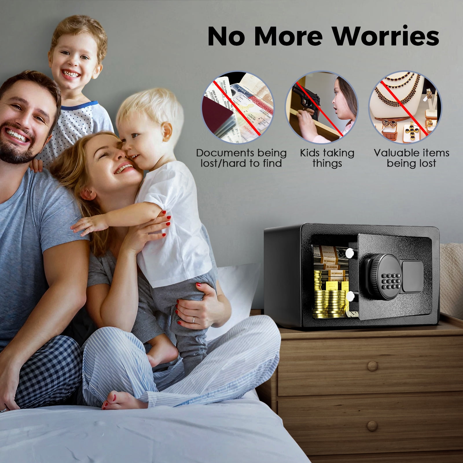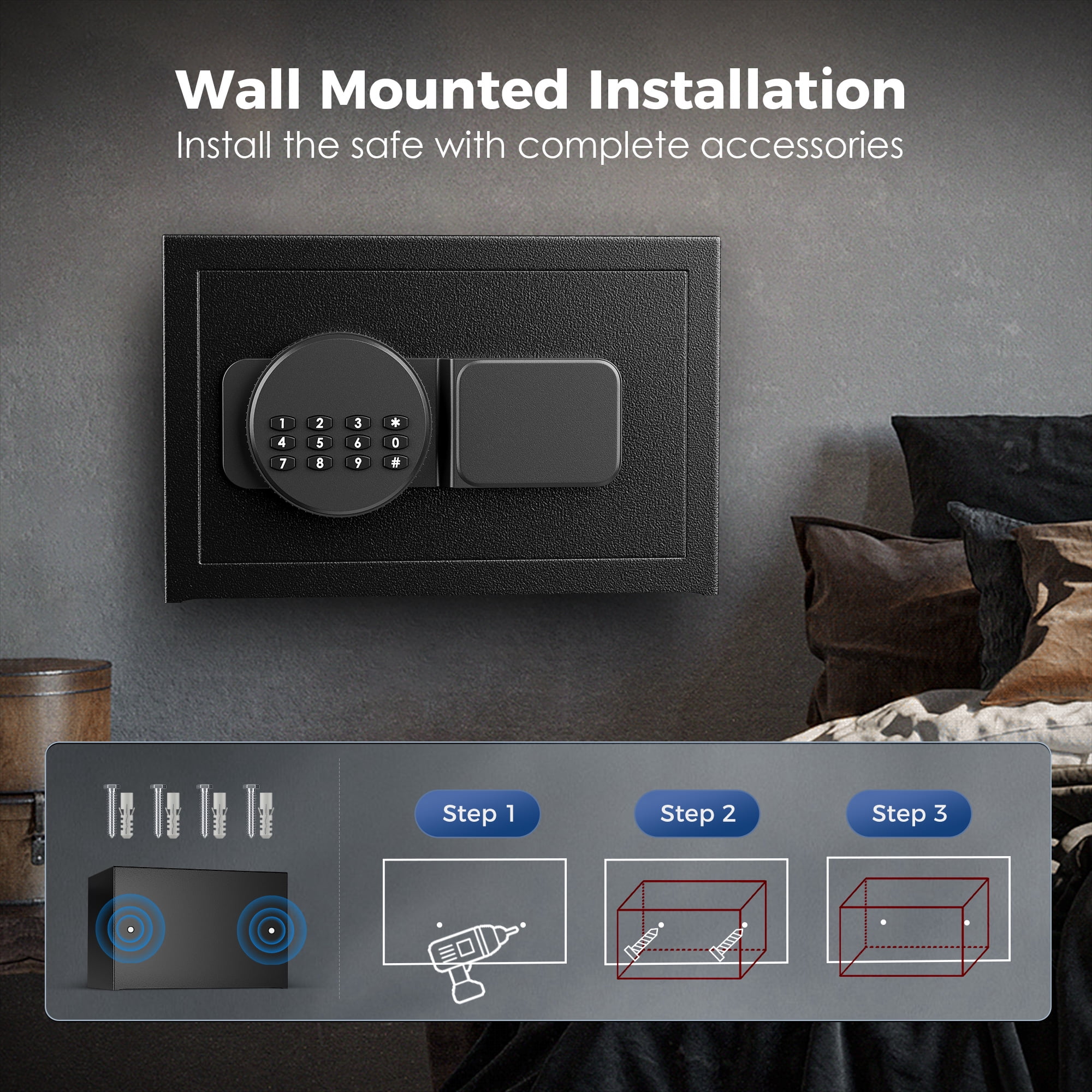 If needed, the fireproof safe boxes for home have pre-assembled holes in the back so you can easily secure them to keep your valuables safe. Also, the compact size of 0.8 cubic feet is easy to conceal in a drawer, cabinet, closet, or nightstand.