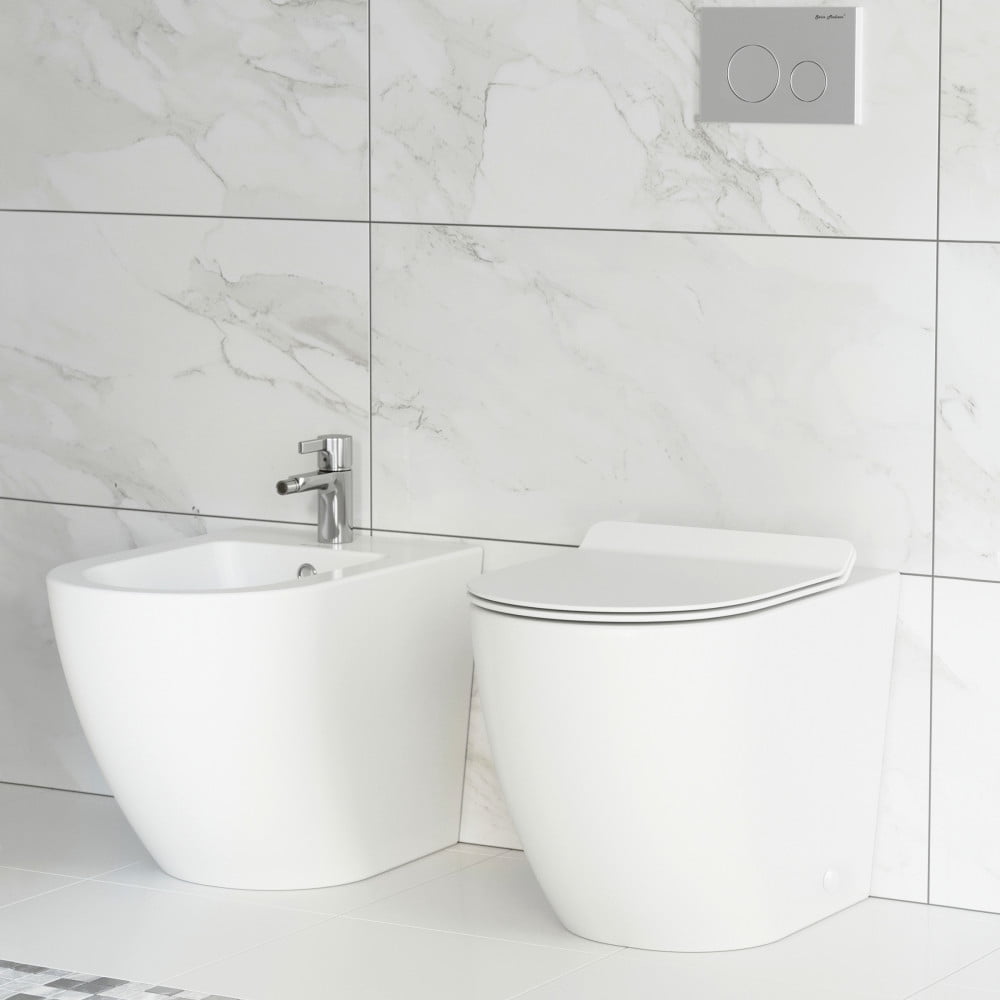 Capture the essence of coastal sophistication with the St. Tropez collection, evoking the breezy allure of Mediterranean living. Optimize space and aesthetics with our back-to-wall toilets, offering a clean and polished look with seamless integration. Offered in white with a glossy finish and black hardware.