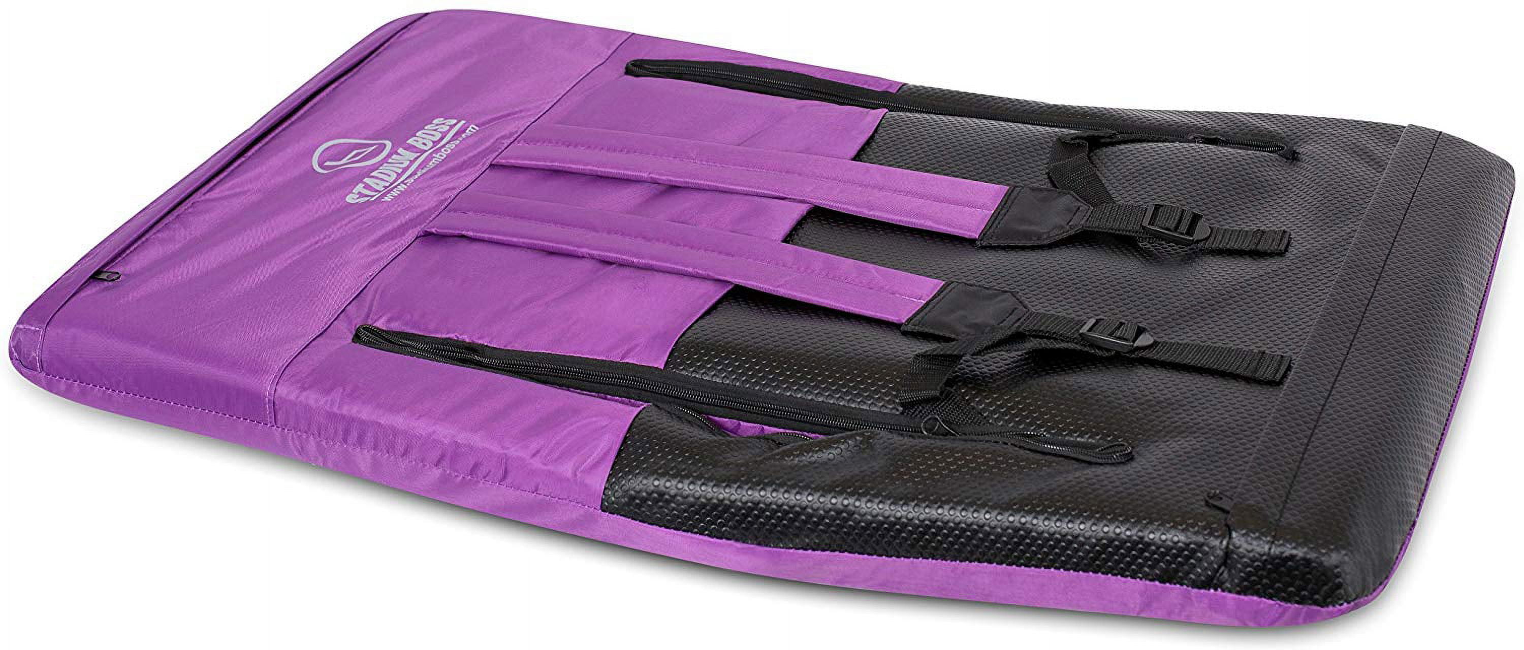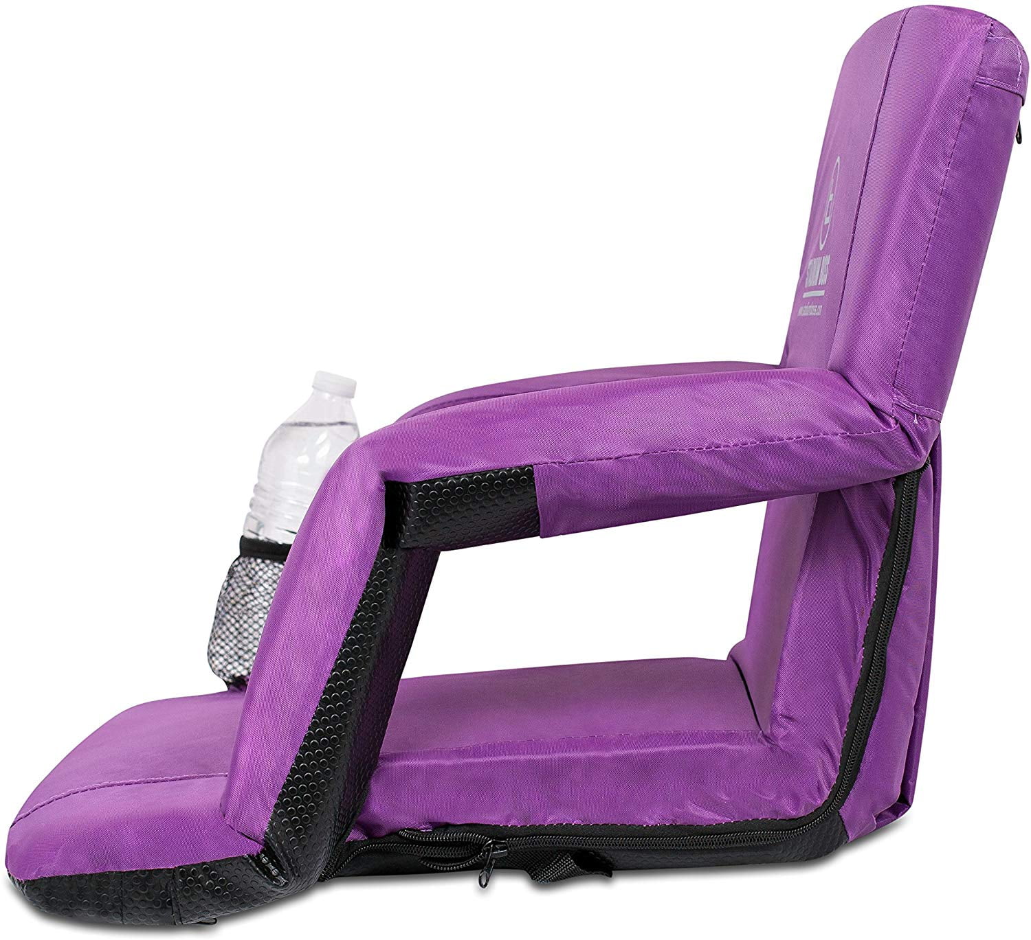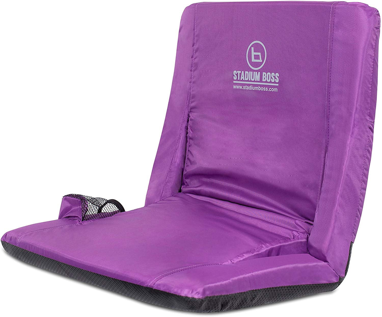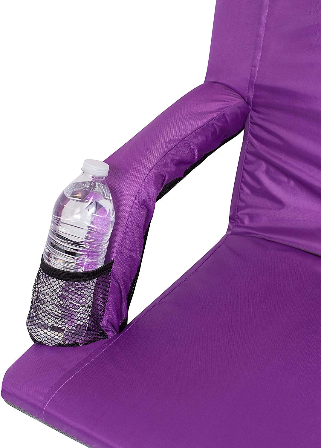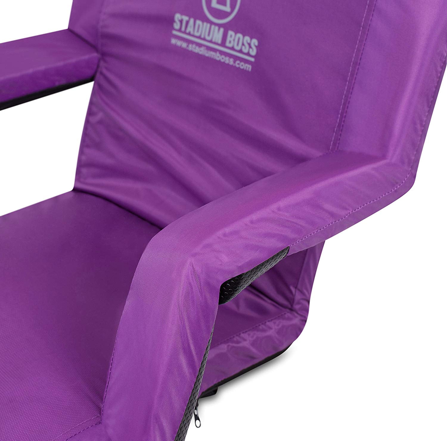 Stadium Boss Recliner Stadium Seat For Bleachers, Benches, Lawns, Backyard, Camping & Beach Padded Sport Chair, Cushion Backs & Armrest 6 Reclining Positions Portable Carry Straps Purple