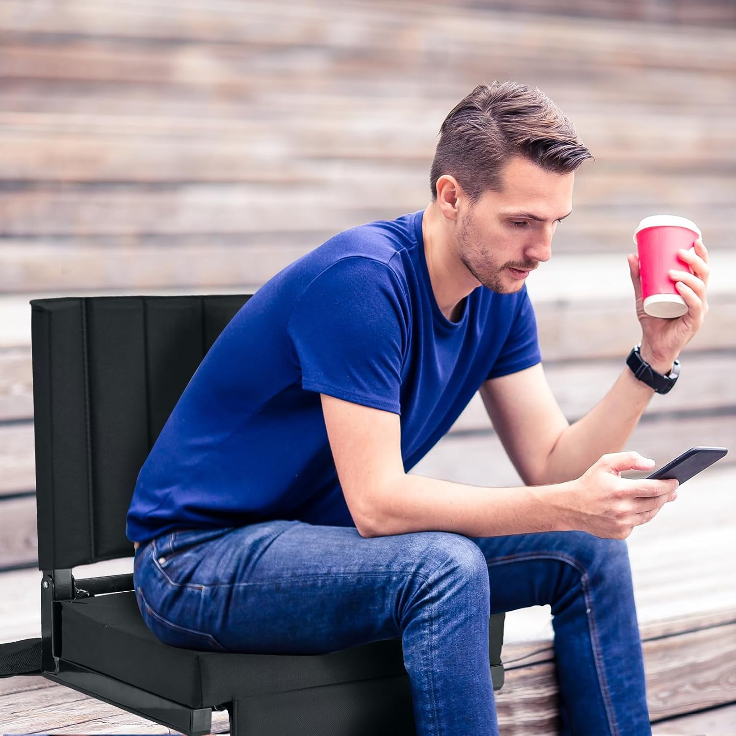 Stadium Seat for Bleachers with Back Support and Wide Padded Cushion Stadium Chair, Includes Shoulder Strap and Cup Holder