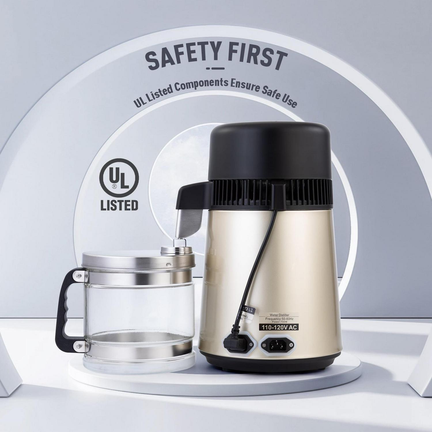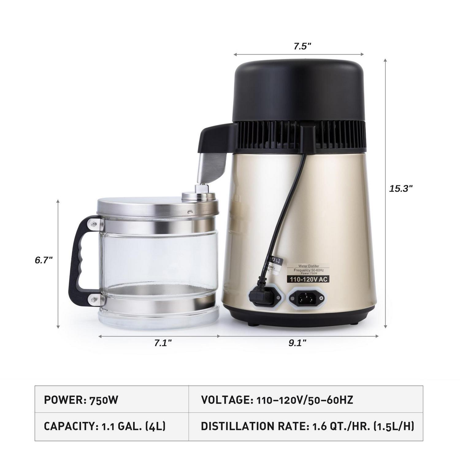 Stainless Steel Water Distiller Purifier Machine 1 Gallon/ 4 Liter Countertop FDA Listed