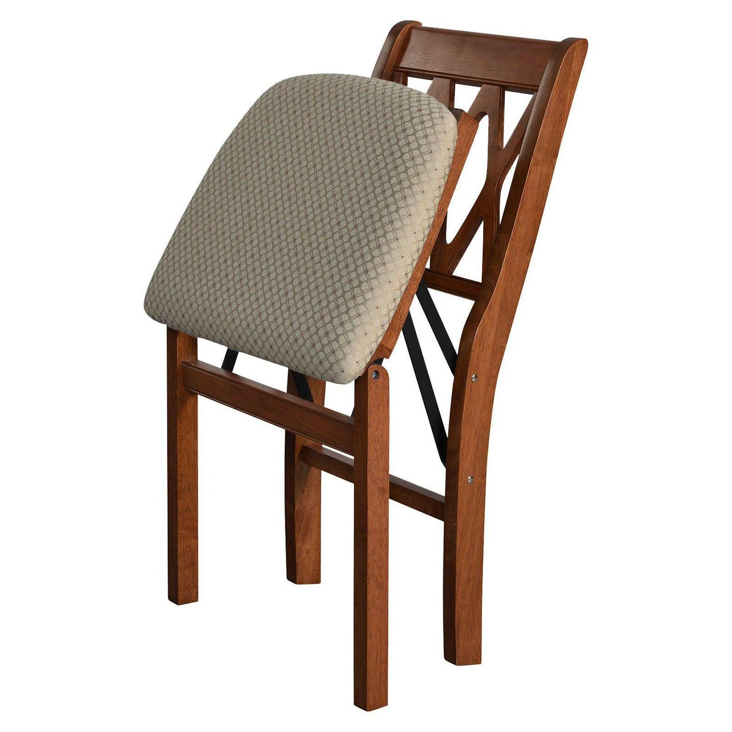 These traditional style wood folding chairs with classic criss-cross decorative back are the perfect extra seating alternative for your home. The chairs are constructed of solid hardwoods with a steel folding mechanism and padded upholstered seat. With the Stakmore quality guarantee and warranty, you can sit easy knowing that you will be fully satisfied with your purchase.