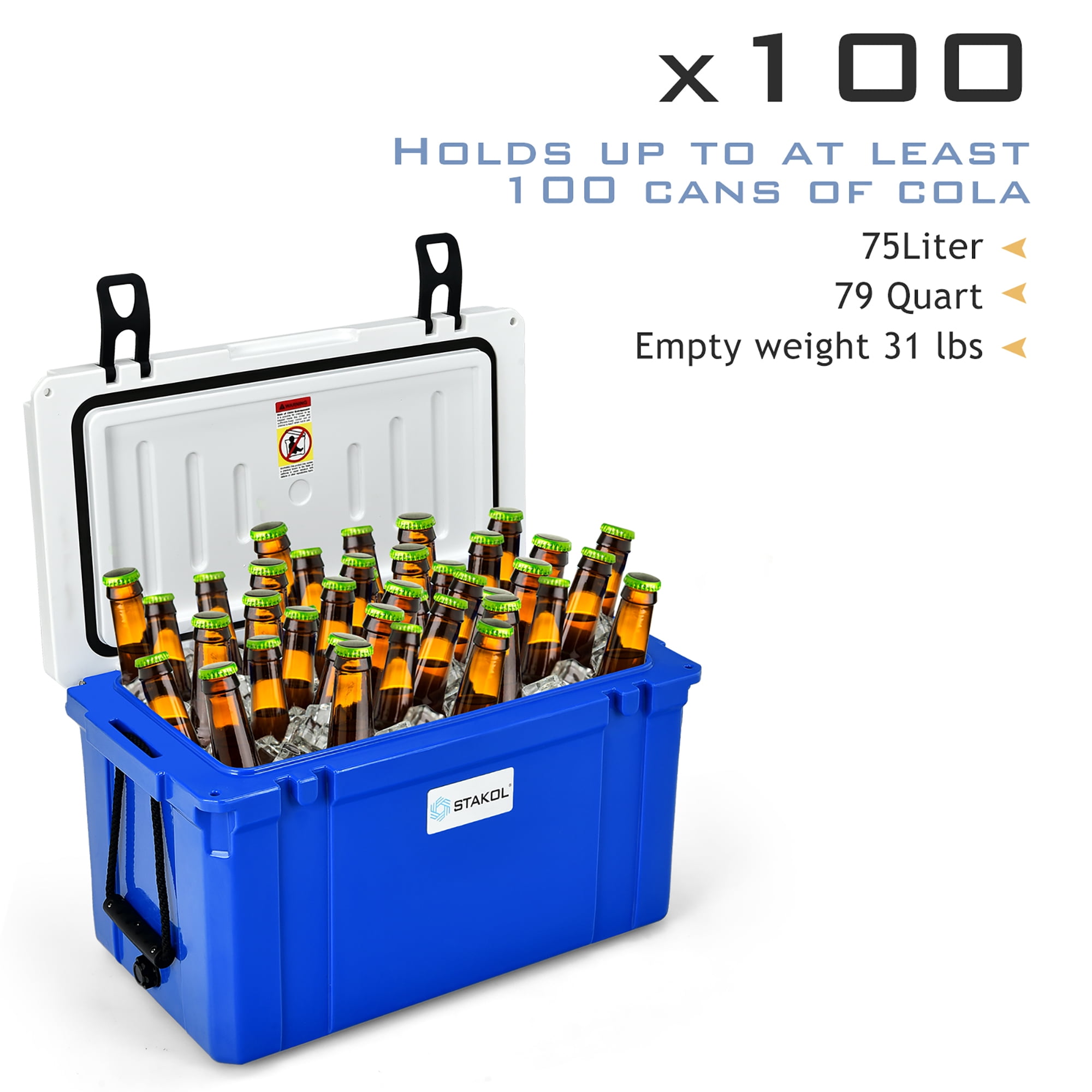 STAKOL 79 Quart Portable Cooler Ice Chest Leak-Proof 100 Cans Ice Box Camping