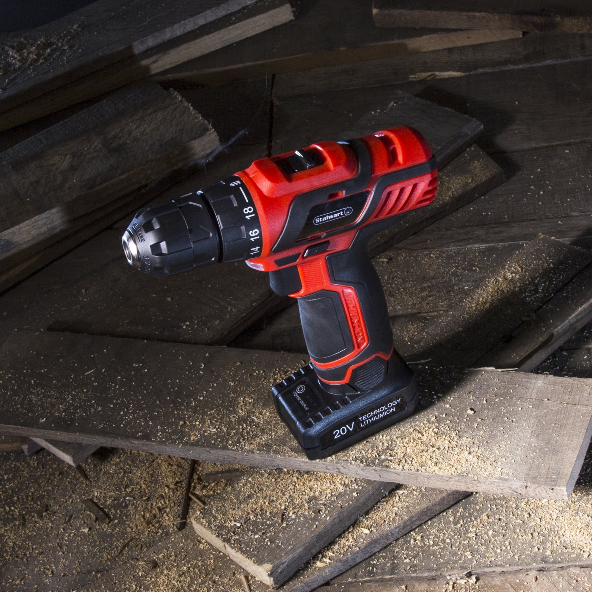 Stalwart 65PC Cordless Drill Set with Rechargeable Battery and Case, Red