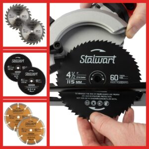 Stalwart 5.8 Amp 4-1/2 Inch Mini Circular Saw with 6 Blades and Laser Guide
