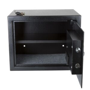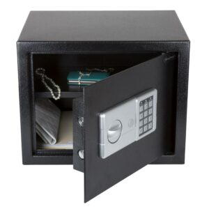 STALWART Electronic Safe a Compact Steel Security Box with Digital Keypad and 2 Manual Keys a Protect Money, Jewelry, Passports, and Documents a For Home or Business (Black)