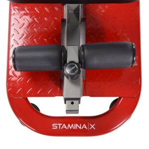 The Stamina X 4-in-1 Strength Training Station allows you to easily and efficiently sculpt and strengthen your back, chest, and legs to achieve the ripped body you desire. In addition to toning muscle, you will also improve cardiovascular health and burn calories. Bring your own dumbbells if you want to up the intensity. One Station, Many Possibilities including exercises like assisted squats, sit-ups, push-ups, sit-to-stands, back extensions, and more. Traditional sissy squat machines offer only a limited range of motion and customization. The 4-in-1 changes that the hyper ab and squat pad is adjustable to a wide height range and is also removable. Through the enhanced design, you can get a much deeper squat compared to traditional equipment. Raise or lower the bench and bring your own kettle or dumbbells for an even wider range of exercises, like chest flies, triceps extensions, and overhead press. Rather than remaining only flat, the bench also adjusts to an incline. Use the bench to engage the abdominals with exercises like Russian twists, crunches, flutter kicks, and v-ups. Compelling Comfort It’s important to stay comfortable during your workout, so you can focus more on results. The 4-in-1 comes with an adjustable, foam ankle pad that keeps you stabilized and aligned during any supine or standing exercise. Textured handles provide a firm grip during push-ups. Lastly, the compact frame is outfitted with anti-slip endcaps to help prevent accidents or slippage. If you’re looking for a powerful, total-body workout and want to kick start your fitness potential into gear, look no further than the Stamina X 4-in-1 Strength Training Station.