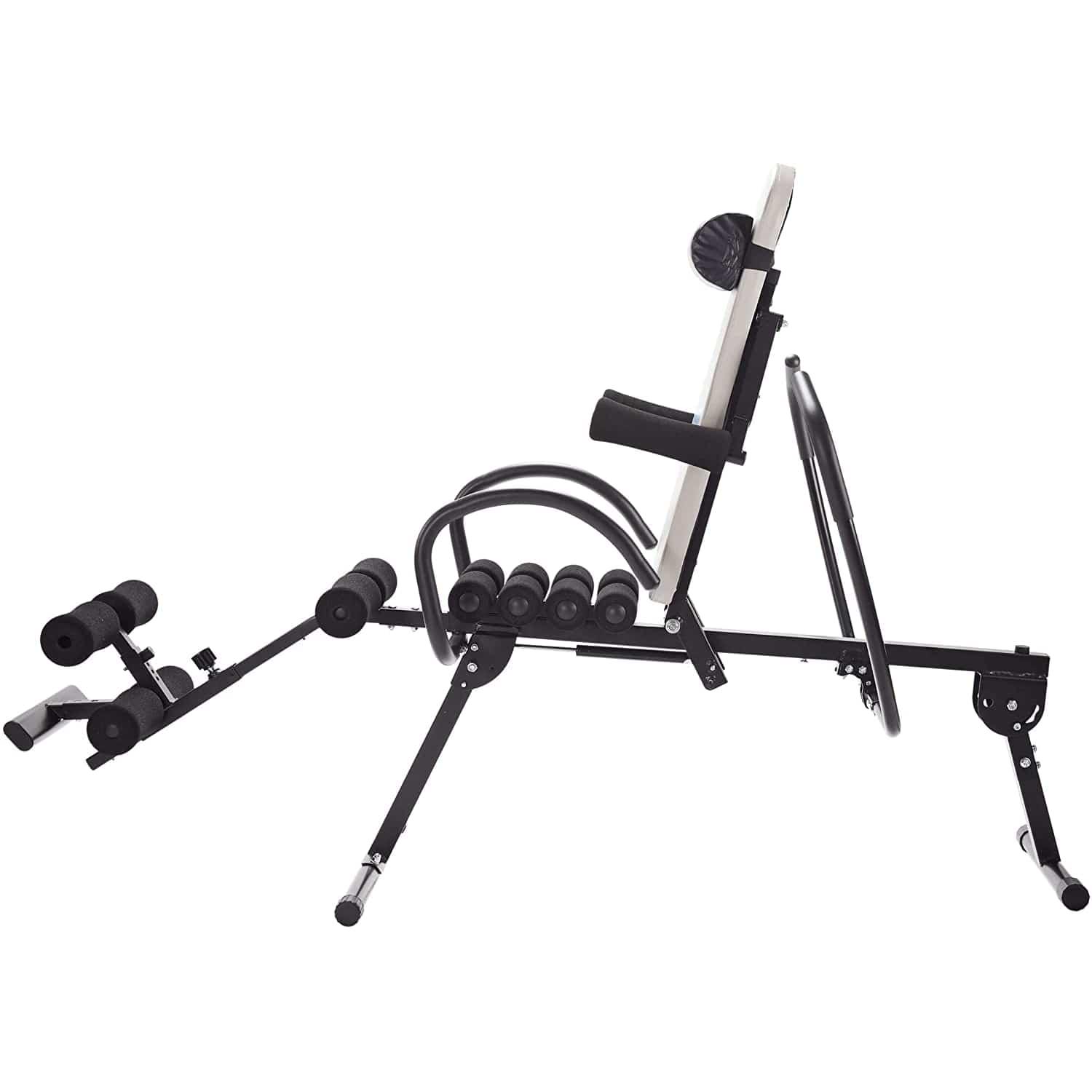 The Stamina Active Aging EasyDecompress PRO provides an efficient and safe way to comfortably decompress the lumbar spine. The simple, easy-to-operate design provides traction, improves body alignment and posture, and reduces risk of future injury, all in the comfort of your own home gym or office*. Compared to traditional inversion machines offering a full-range of motion, the partial movement on the Easy Decompress offers an enhanced level of control and safety. Two sets of ergonomic handlebars and a low-to-ground design provide a convenient way to get on and off of the Easy Decompress bench, even for those with limited mobility. The gentle arc angle can be easily adjusted to match your desired range of motion. The upgraded PRO version includes even more features. A gas-assisted shock allows for a slow, automatic and controlled movement downwards and back up without extra intervention, allowing for an even easier decompress. The shock speed can be adjusted to match your weight. These extra additions make the Decompress PRO ideal for users that need extra assistance getting up and down. The Easy Decompress PRO bench is engineered for comfort while decompressing. Eight padded foam rollers provide a relaxing massage to tight lower back muscle groups during movement. The cushioned head and neck pillow keeps your head cradled in an ideal position for proper alignment, while the padded ankle, leg and armpit rests provide gentle relaxation for the entire body while stretching. Adjust the lower leg rests to your desired height with a lock-in pin. The Stamina Active Aging Easy Decompress PRO builds on the foundation of traditional inversion machines, offering an enhanced level of safety and control when decompressing the spine without skimping on additional features.