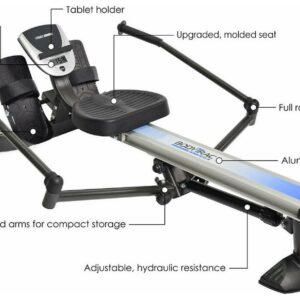 An upgrade to the highly-rated BodyTrac Glider 1050, the BodyTrac Glider 1060 Rower provides an efficient and effective workout to improve your cardiovascular fitness and strengthen your legs, arms, back, abs and glutes. The upgrades include a deluxe molded seat for comfort, improved electronics with tablet holder (tablet not included) and larger footplates.