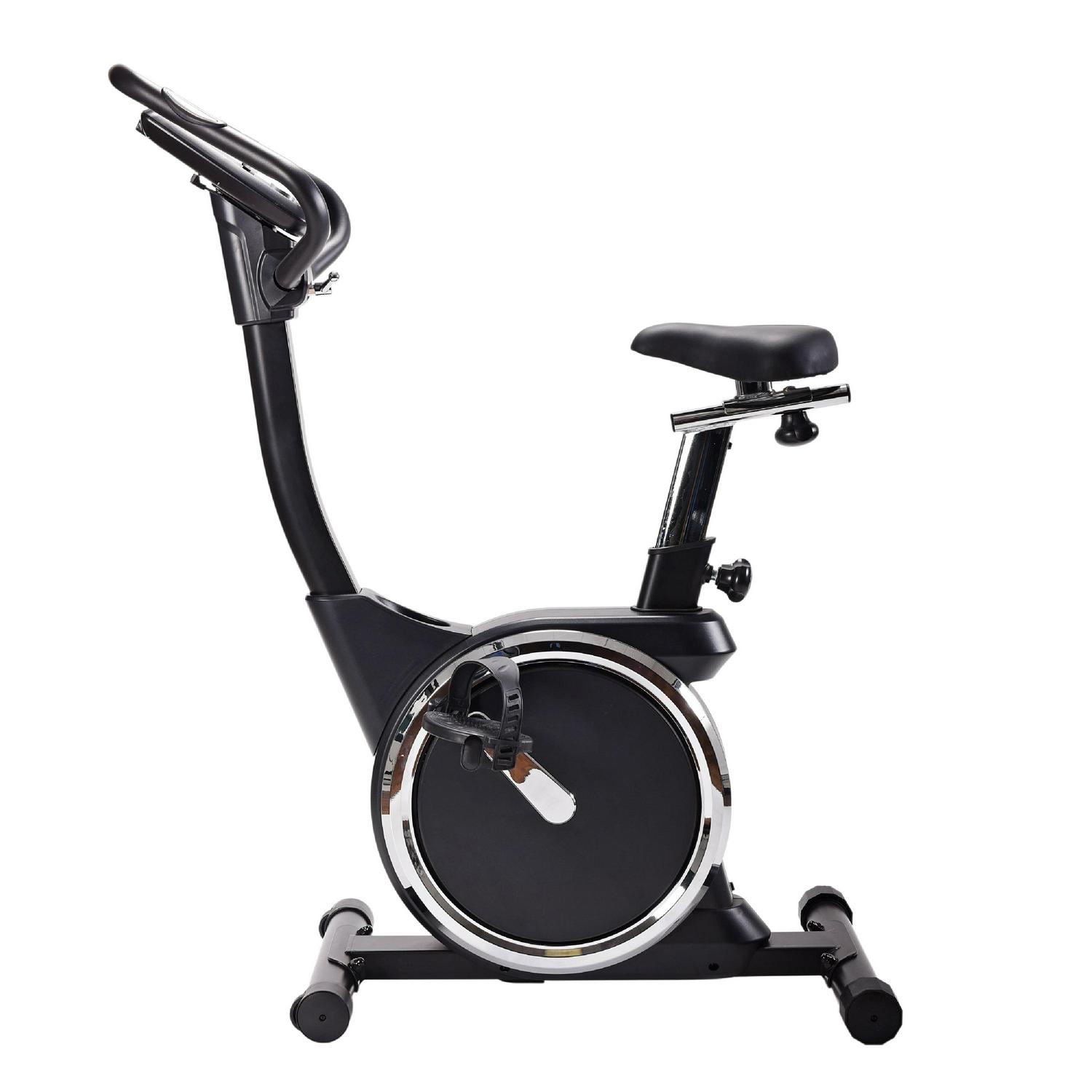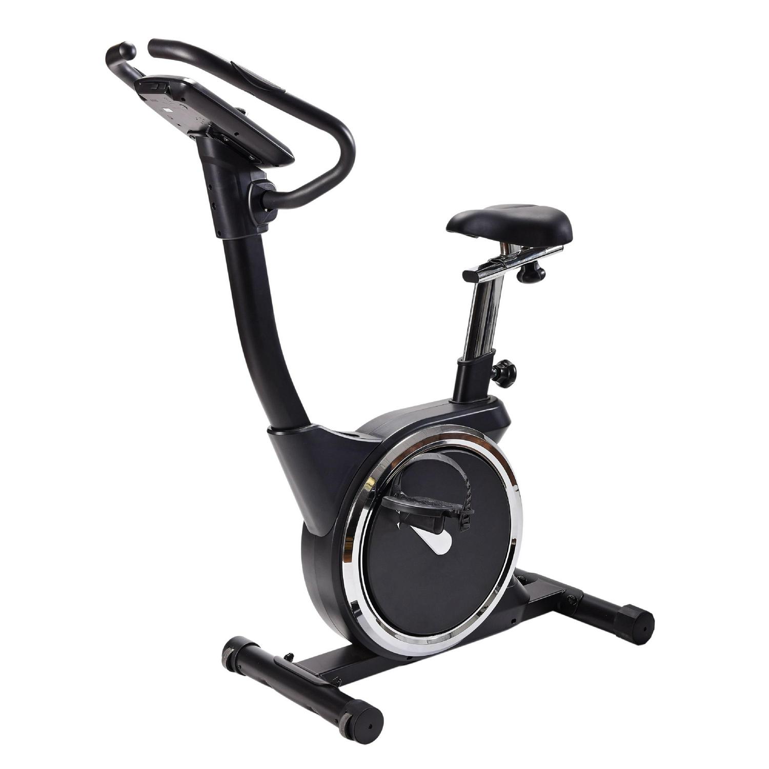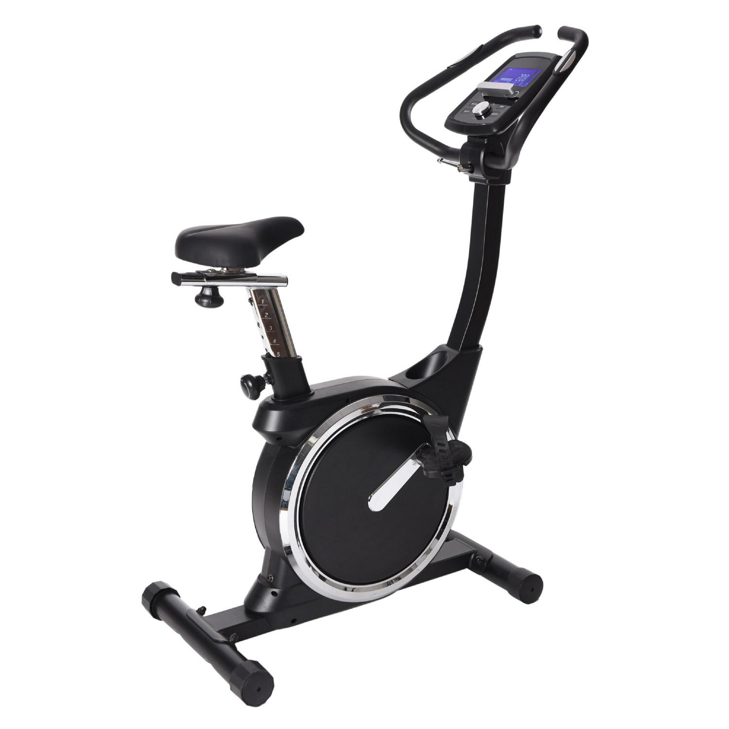The Stamina Deluxe Magnetic Upright Exercise Bike 345 combines the plentiful benefits of cycling with the convenience and accessibility of an in-home workout. A dual focus on both performance and comfort helps you build the body you desire. Keep track of your stats on the easy-to-operate LCD monitor, including speed, time, distance, RPM (rotations per minute), watts, and pulse. Program custom workouts with the monitor, including intervals, metric-focused routines, and body-fat percentage trackers. Use the monitor to set the smooth, magnetic resistance to your desired intensity level. The Stamina Deluxe Magnetic Upright Exercise Bike 345 is engineered for comfort, allowing you to focus more on achieving your fitness goals. It is outfitted with a molded padded, height-adjustable seat that is both height and distance-adjustable, textured pedals with adjustable straps, and padded, rotating handlebars with integrated heart rate sensors. A drink holder and device tray are also included, allowing you to keep your drink and smartphone/tablet nearby while pedaling. 250 lb. weight limit.