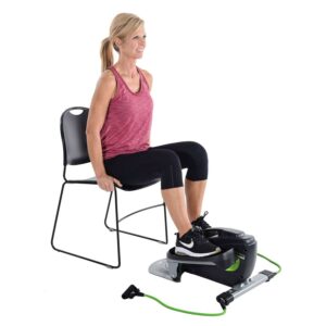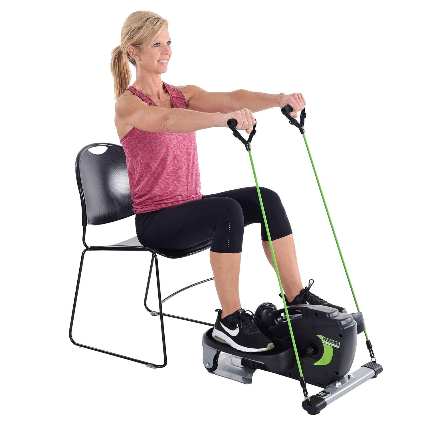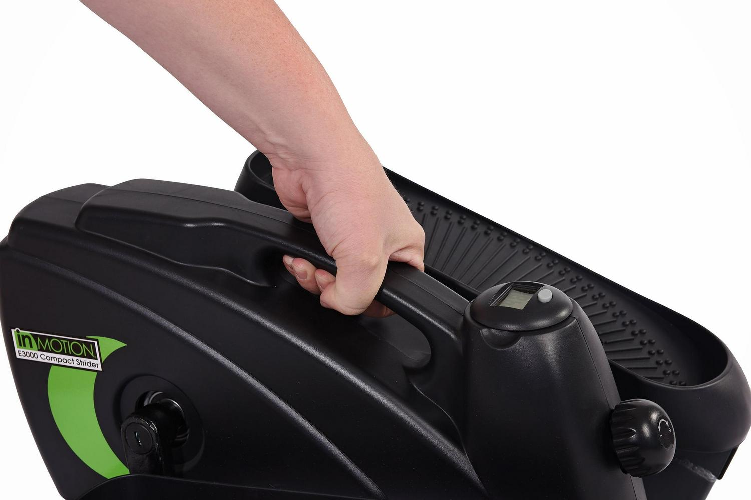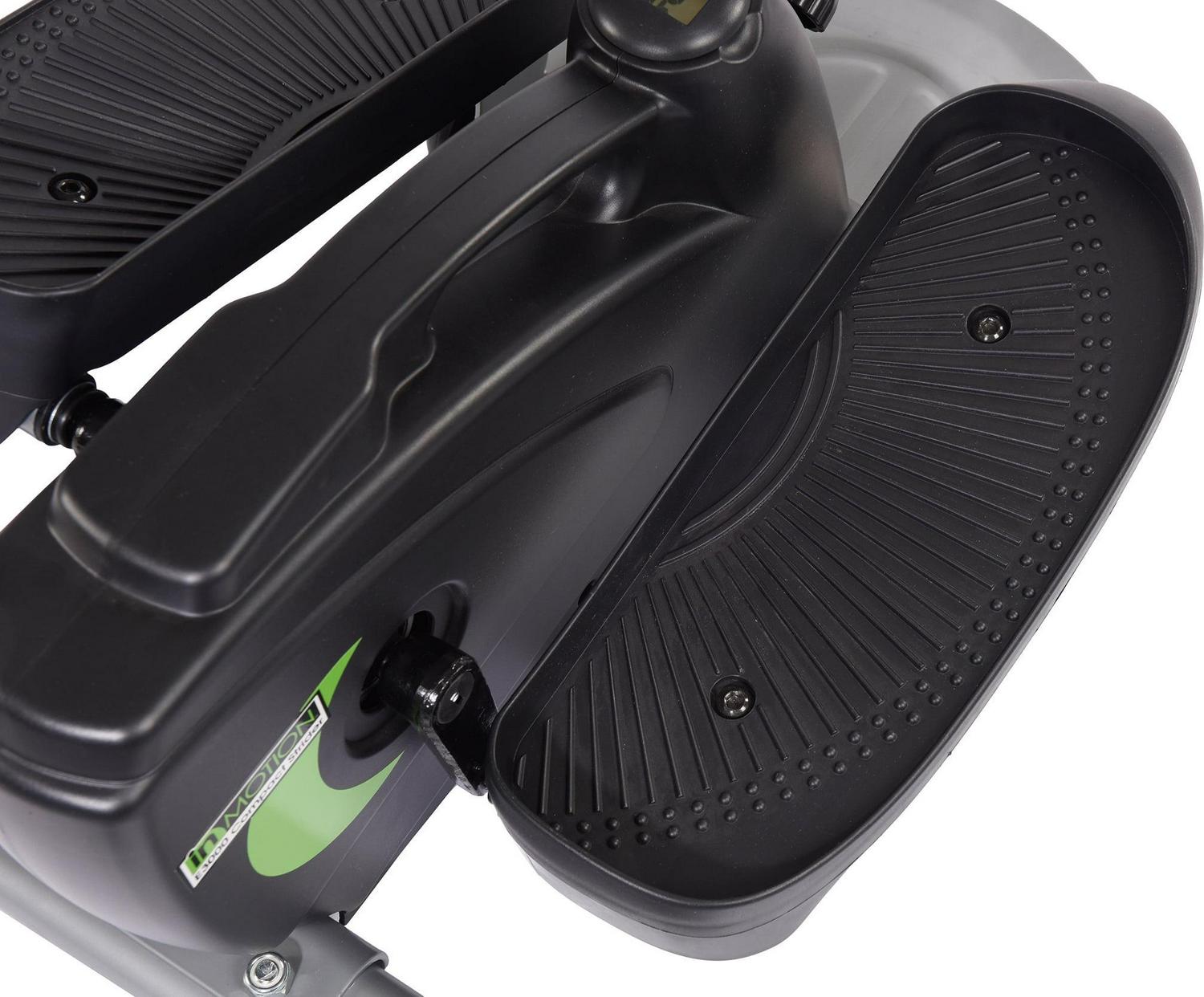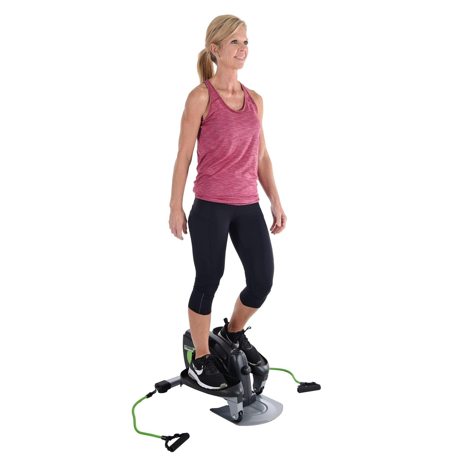 With a footprint of only 24 by 18 , you can use the Stamina In Motion Compact Elliptical Strider with Resistance Tubes just about anywhere, sitting or standing. This versatility allows you to pedal while you re at the office or during a more intense workout at home it s your choice. Plus, the resistance tubes allow you to work your upper body as well, just like a full-sized elliptical. Customizing the intensity of your workout is easy with the adjustable magnetic tension. Simply choose the level that s right for you and pedal away. You can also work the elliptical in the reverse direction to target different muscle groups. And if you need more guidance during your workout, fear not. Tracking your progress is a breeze with the multi-function monitor. Your total number of strides, exercise time and calories burned are displayed on the monitor. You can even scan through all the stats. So if you re ready for effective, convenient cardio, you re ready for the Stamina In Motion Compact Elliptical Strider with Resistance Tubes. 250 lb Weight Limit.