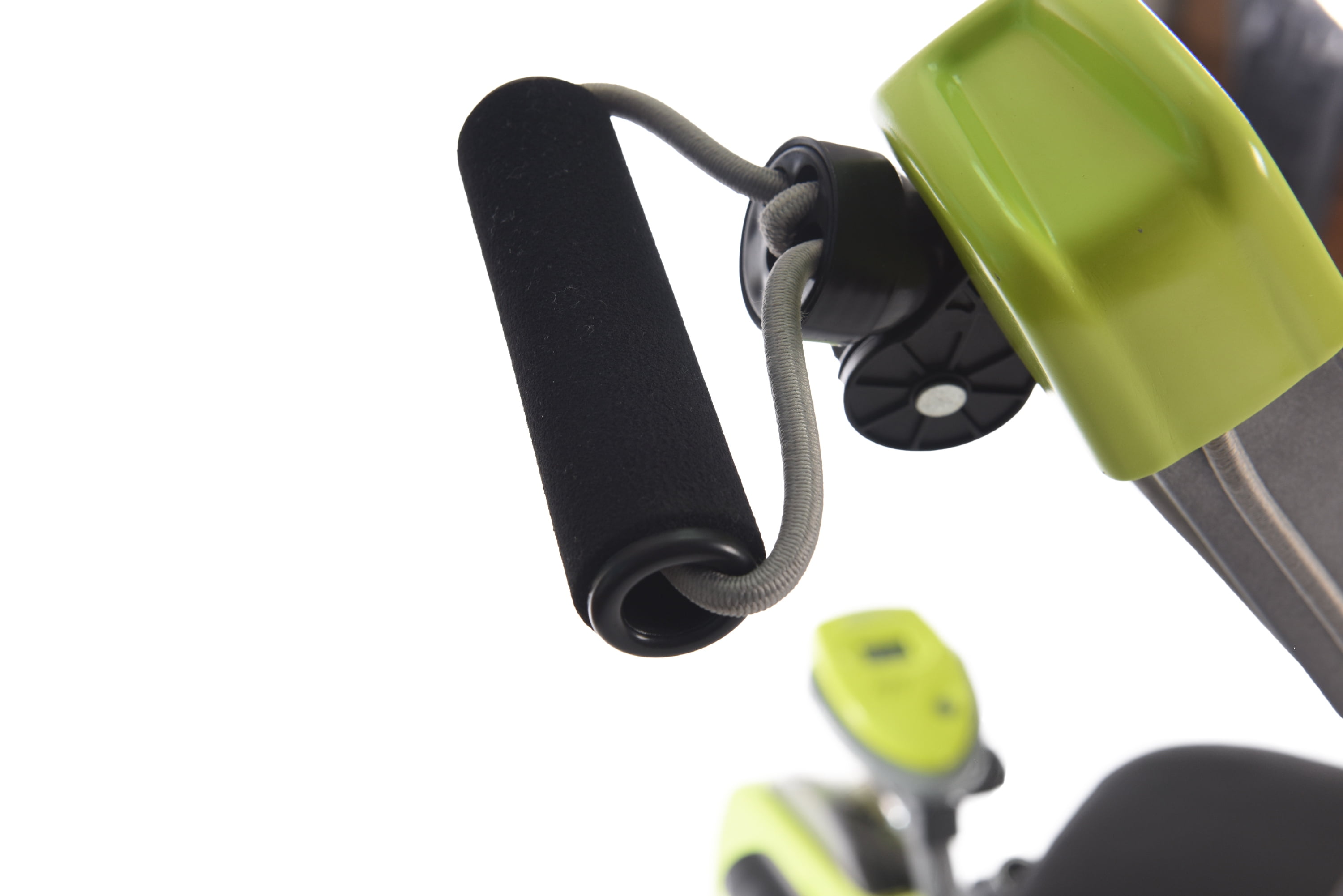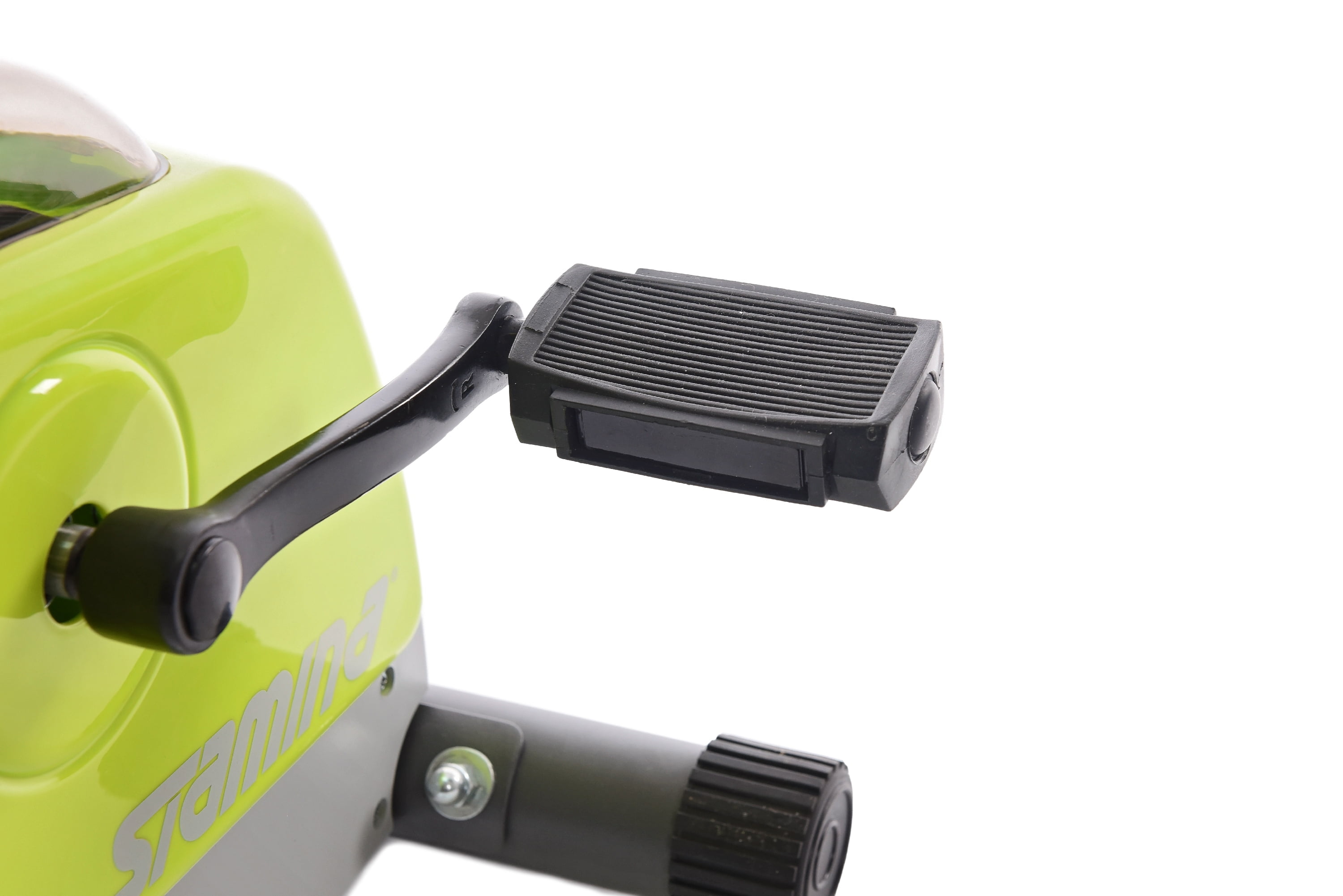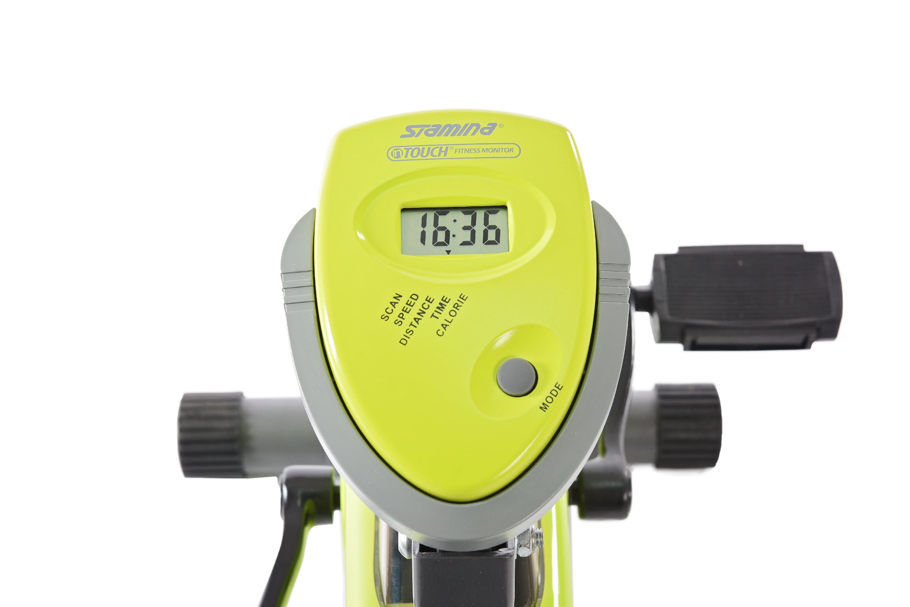 Designed for convenience, portability and versatility, the Stamina Wonder Upright Exercise Bike packs a workout that’s good for the whole body. Engage your core and legs with the bike. When you’re ready, take it to the next level with the included Wonder Arms with bungee cord resistance. The Wonder Arms help you strengthen and tone your arms, shoulders, chest, and back. Exercises like chest press, curls, flies, and many more are possible with the smooth bungee cord resistance and pulley system. Easily adjust between exercises by pulling the adjustment knob. The arms will automatically adjust to the same position on each side. The soft, padded grips are comfortable on your hands. The simple, single-button multi-function monitor tracks metrics such as workout time, calories burned, speed and distance traveled. Scan mode will cycle through these during your workout. When you’re ready to increase the difficulty of the pedaling motion, the handy adjustable resistance dial lets you do it in a snap. Change the angle of your resistance workout with the adjustable Wonder Arms for a larger variety of upper-body exercises. A wide, cushioned seat, backrest and padded handlebars means less discomfort in the middle of your workout. The textured pedals and floor endcaps give you and your new bike added stability. Plus, the seat height is adjustable. When you’re done with your workout, use the built-in wheels for easy transport to the nearest storage area.