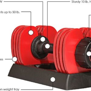 – Convenient Weight Adjustments: Lets you increase or decrease the dumbbell’s weight, in 5-pound increments, with the simple turn of a knob